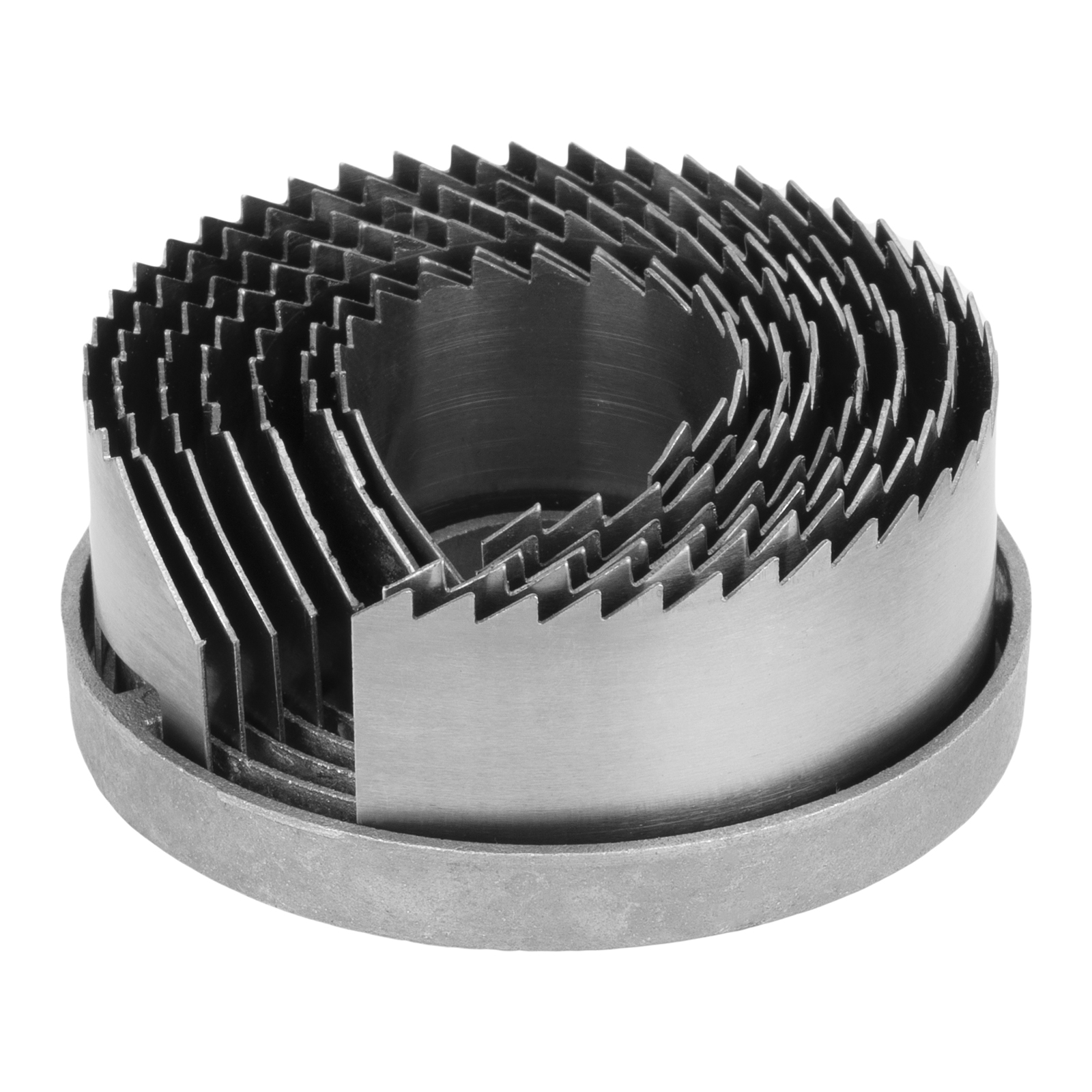 - Решение широкого спектра задач — в комплект входит 7 полотен диаметром от 26 до 63 мм.