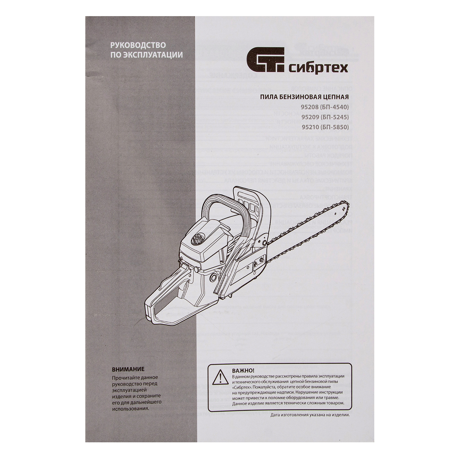 Пила цепная бензиновая - 1 штШина - 1 штЧехол шины - 1 штЦепь - 1 штЕмкость для приготовления смеси - 1 штКомплект инструментов - 1 штРуководство по эксплуатации и гарантийный талон - 1 шт |