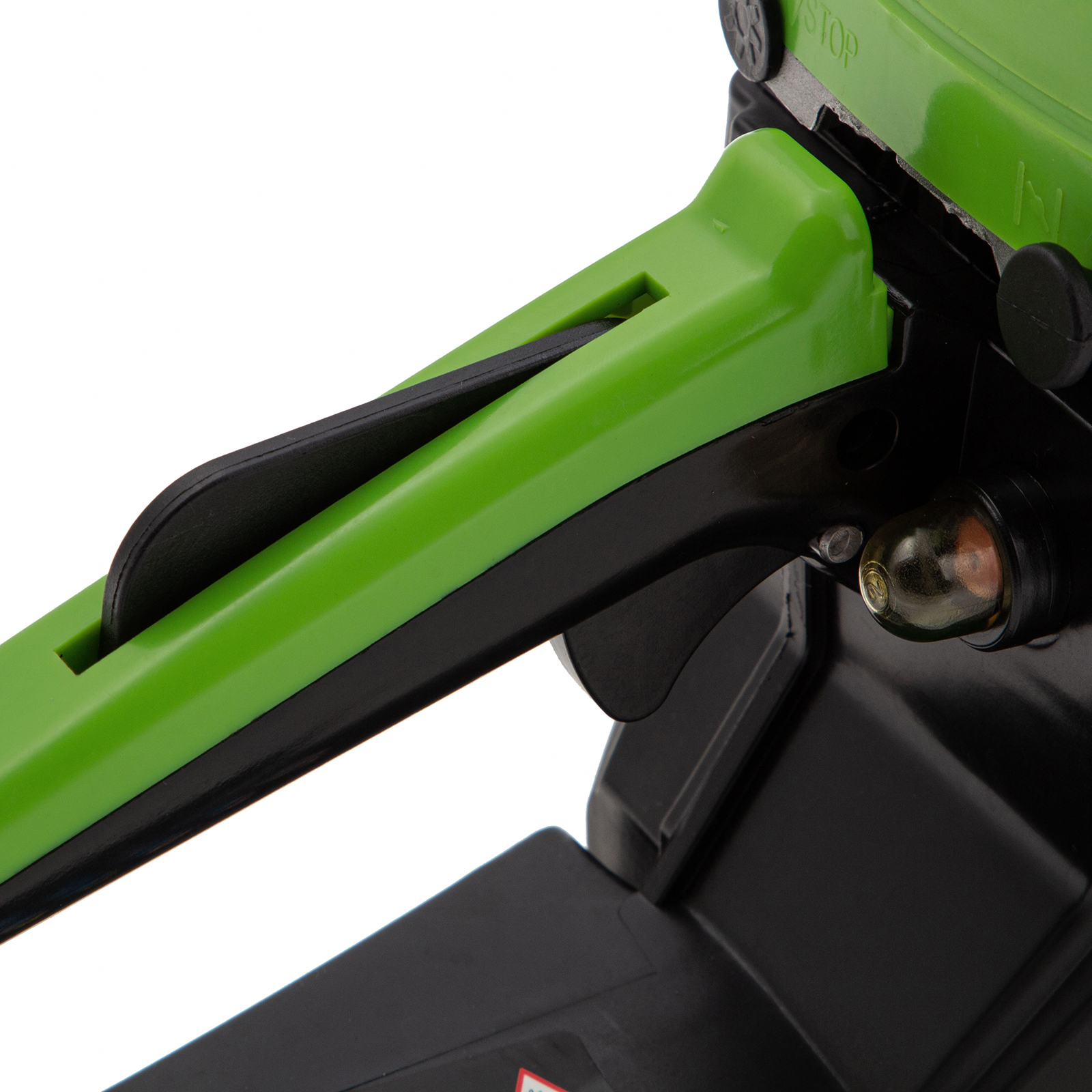 - Безопасность — пила оснащена блокировкой от случайного запуска и тормозом цепи, который моментально срабатывает при отскоке инструмента.