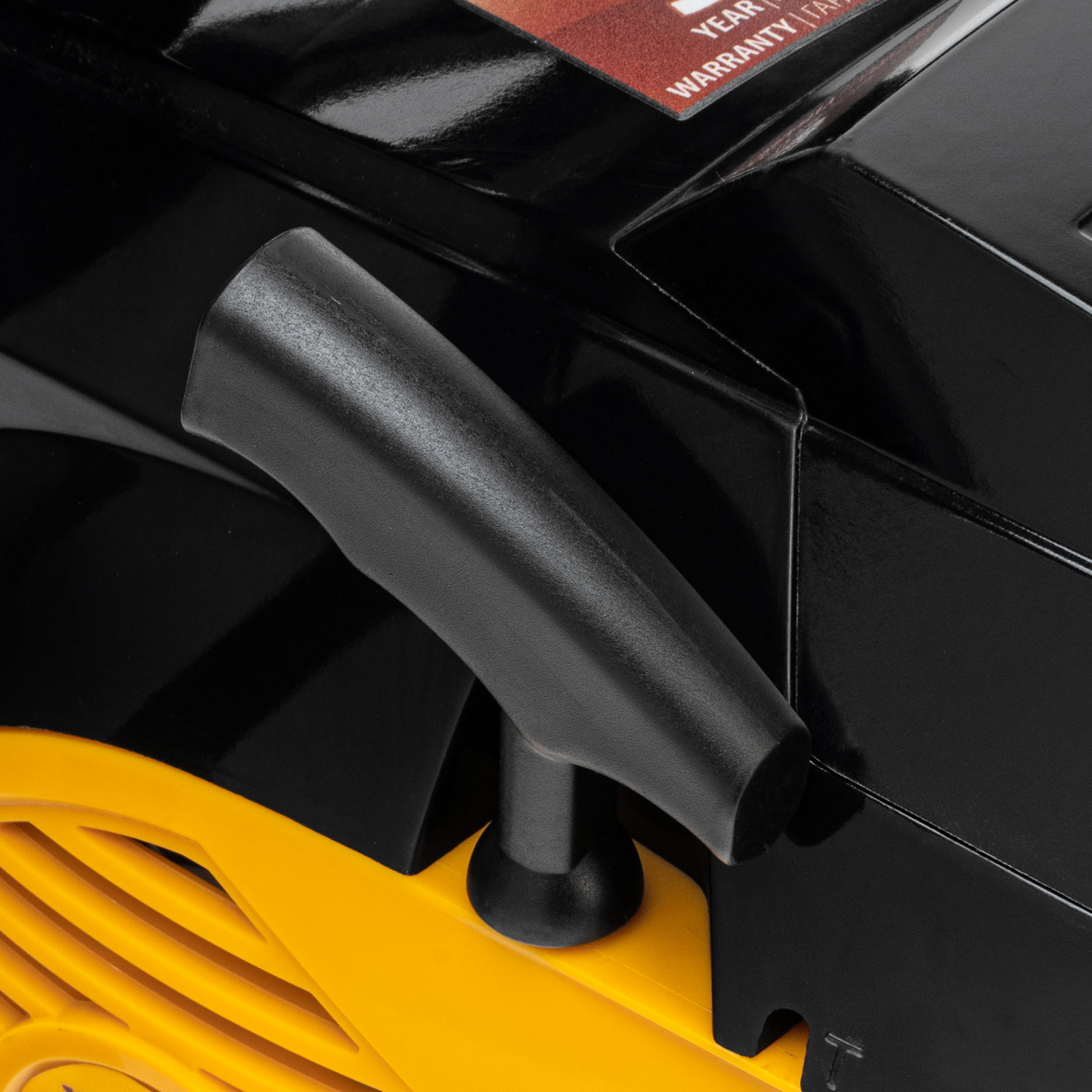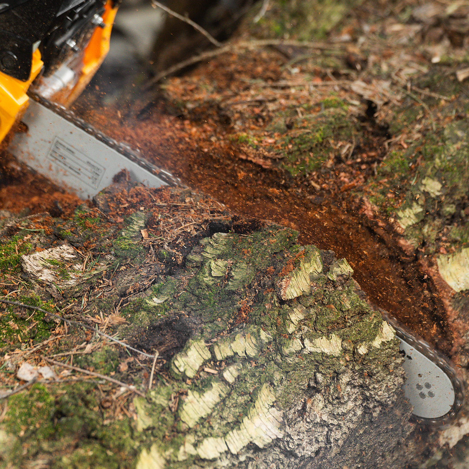 - Безопасность пользователя — специальный щиток и автоматический тормоз цепи уменьшают риск получения травм при отскоке пилы, также предусмотрена защита от случайного пуска.