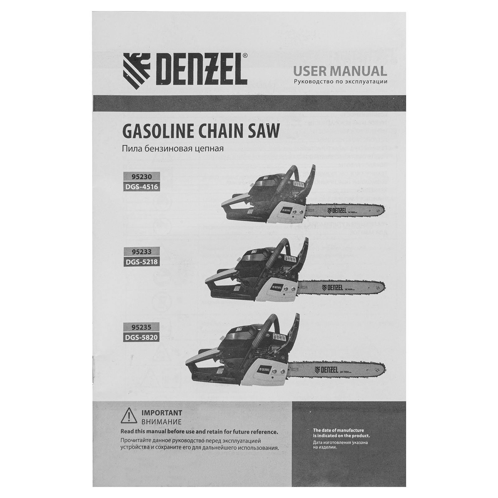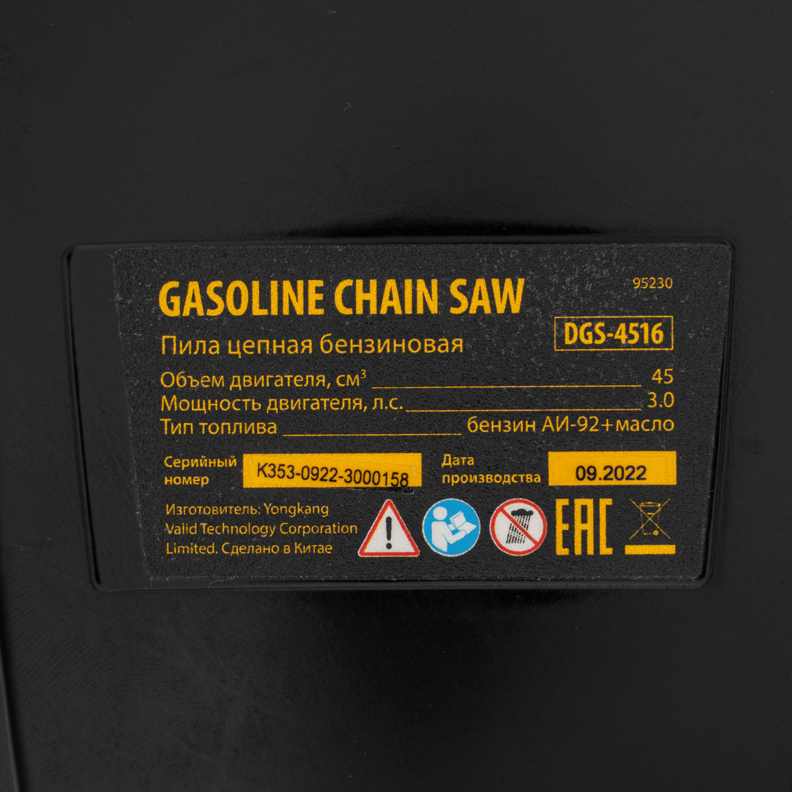 Пила цепная бензиновая DGS-4516, шина 40 см, 45 см3, 3 л.с, шаг 3/8, паз 1.3 мм, 57 звеньев Denzel в Москве