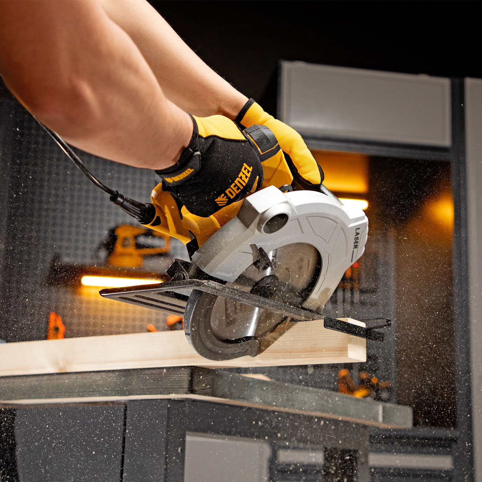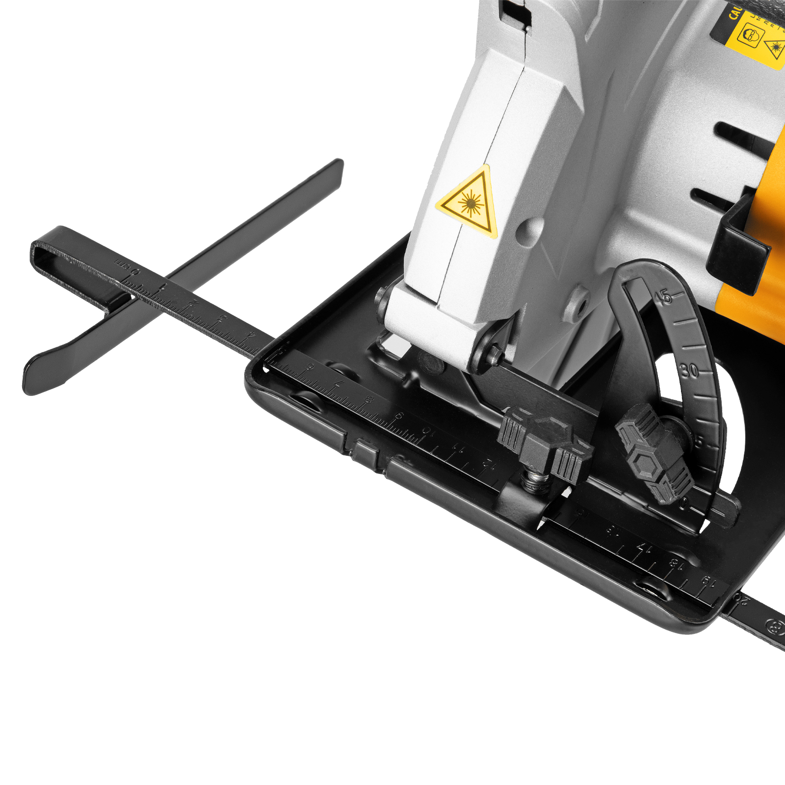 - Высокая точность — лазерный указатель, показывающий линию предстоящего среза, и стальная параллельная направляющая помогают осуществлять ровные прямые пропилы без дополнительной разметки.