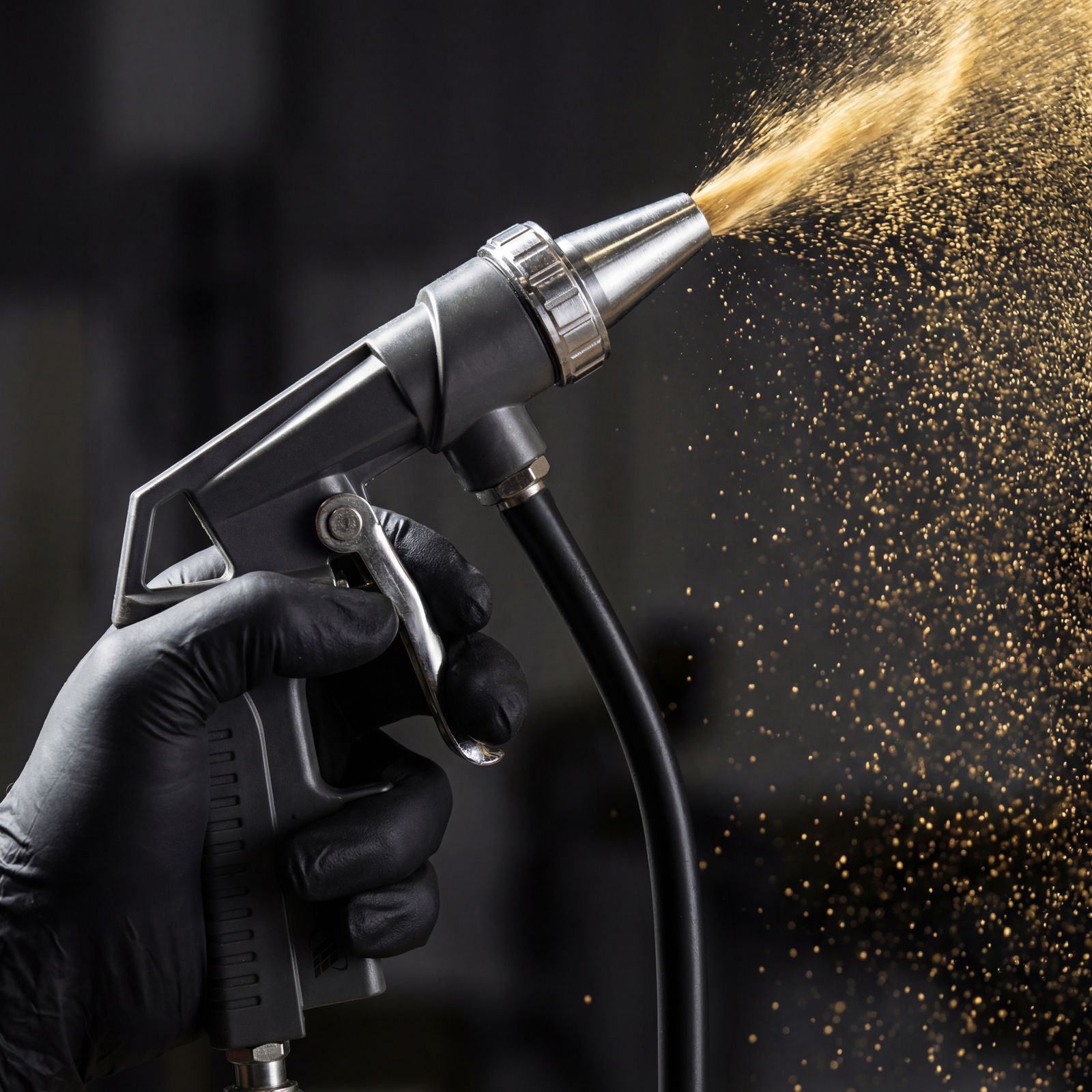 - Длина шланга 1 м — можно работать на расстоянии от емкости с абразивом.