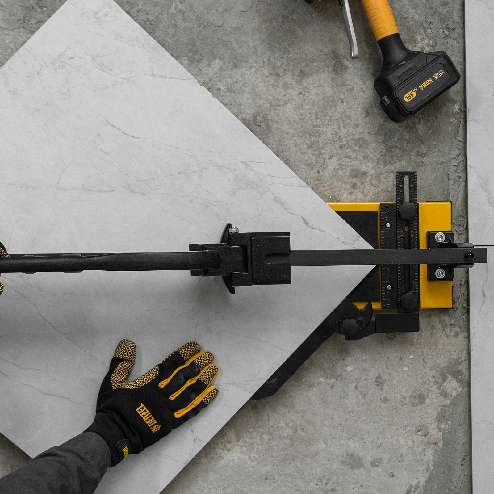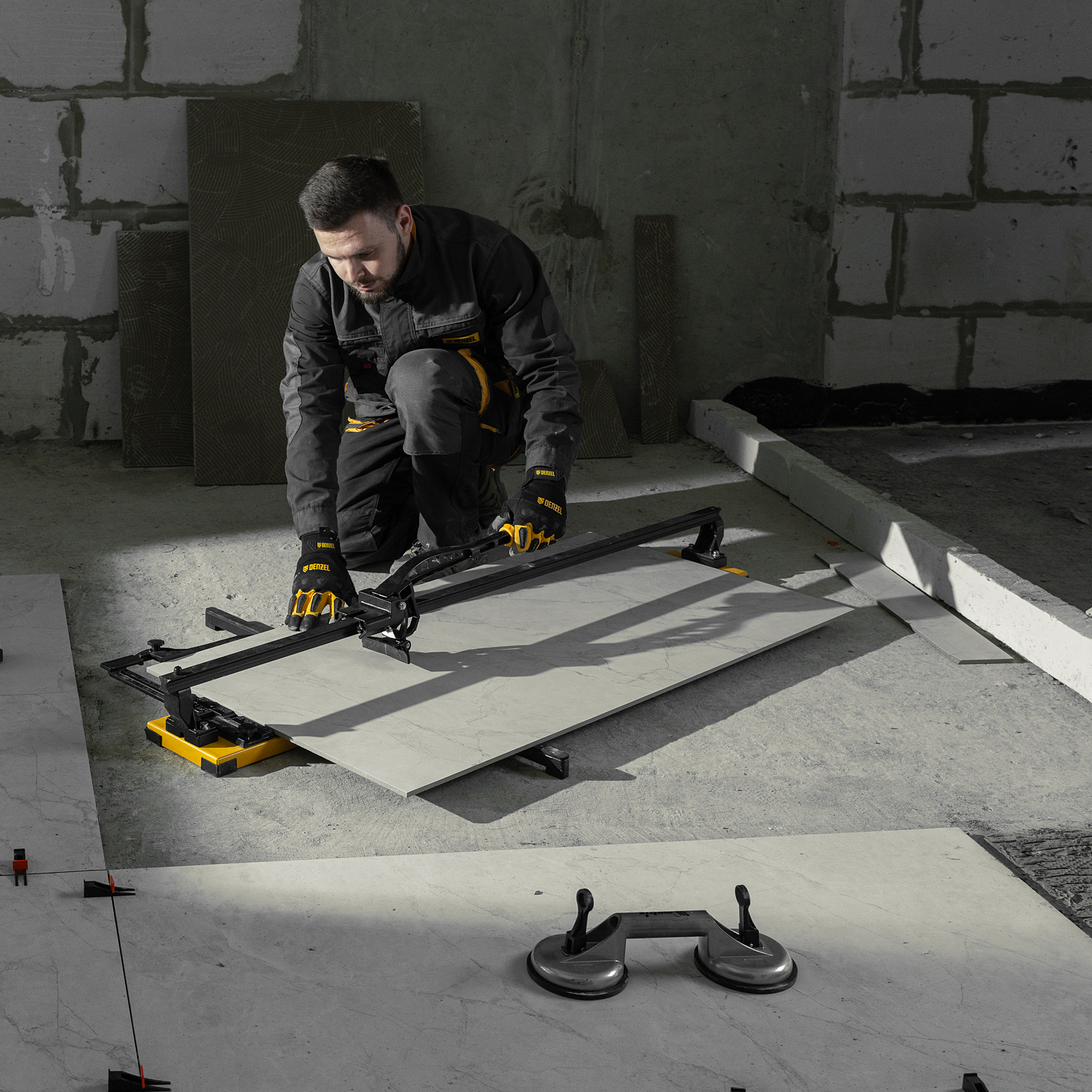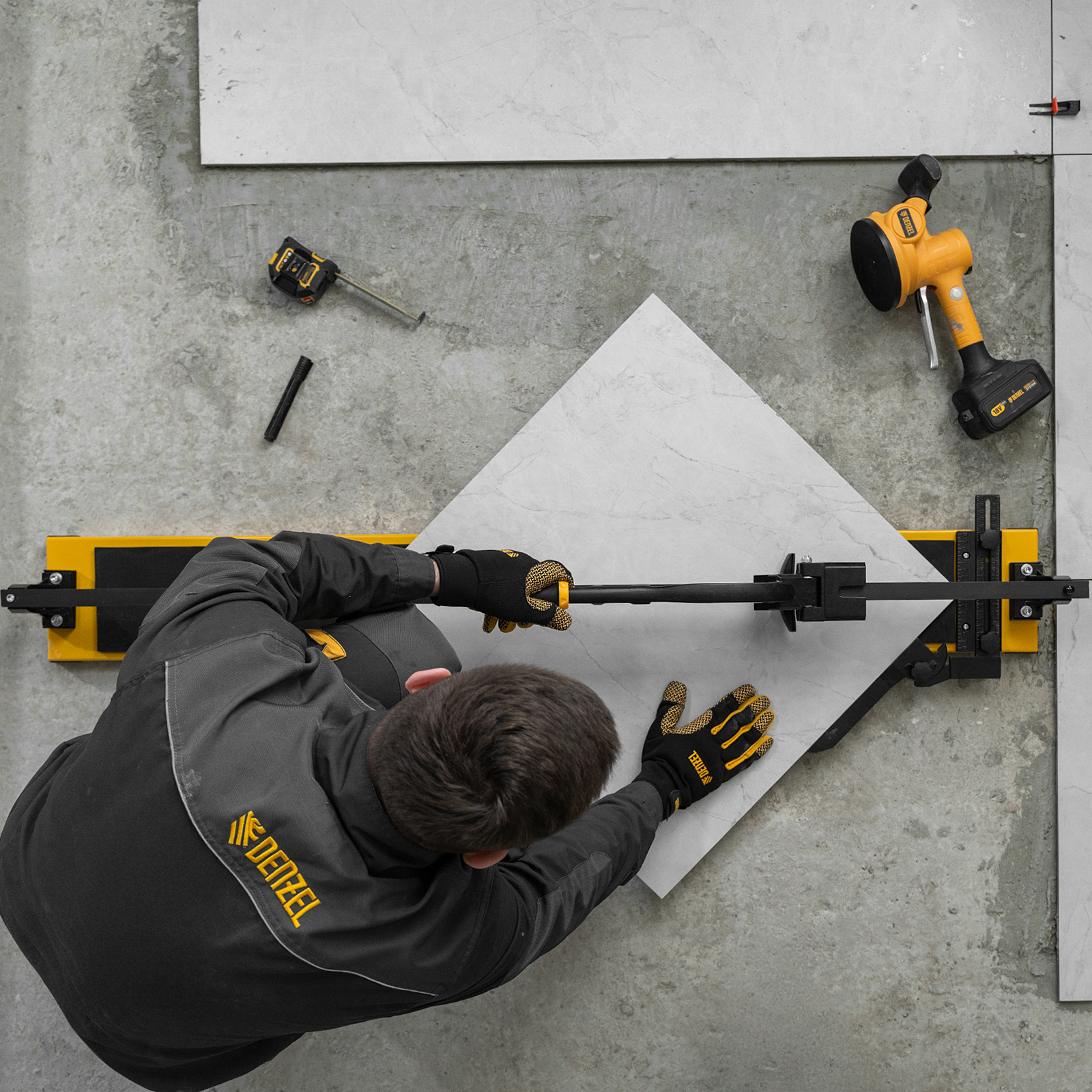 - Эргономичность — плитколом с магнитным держателем не создает помех во время резки.