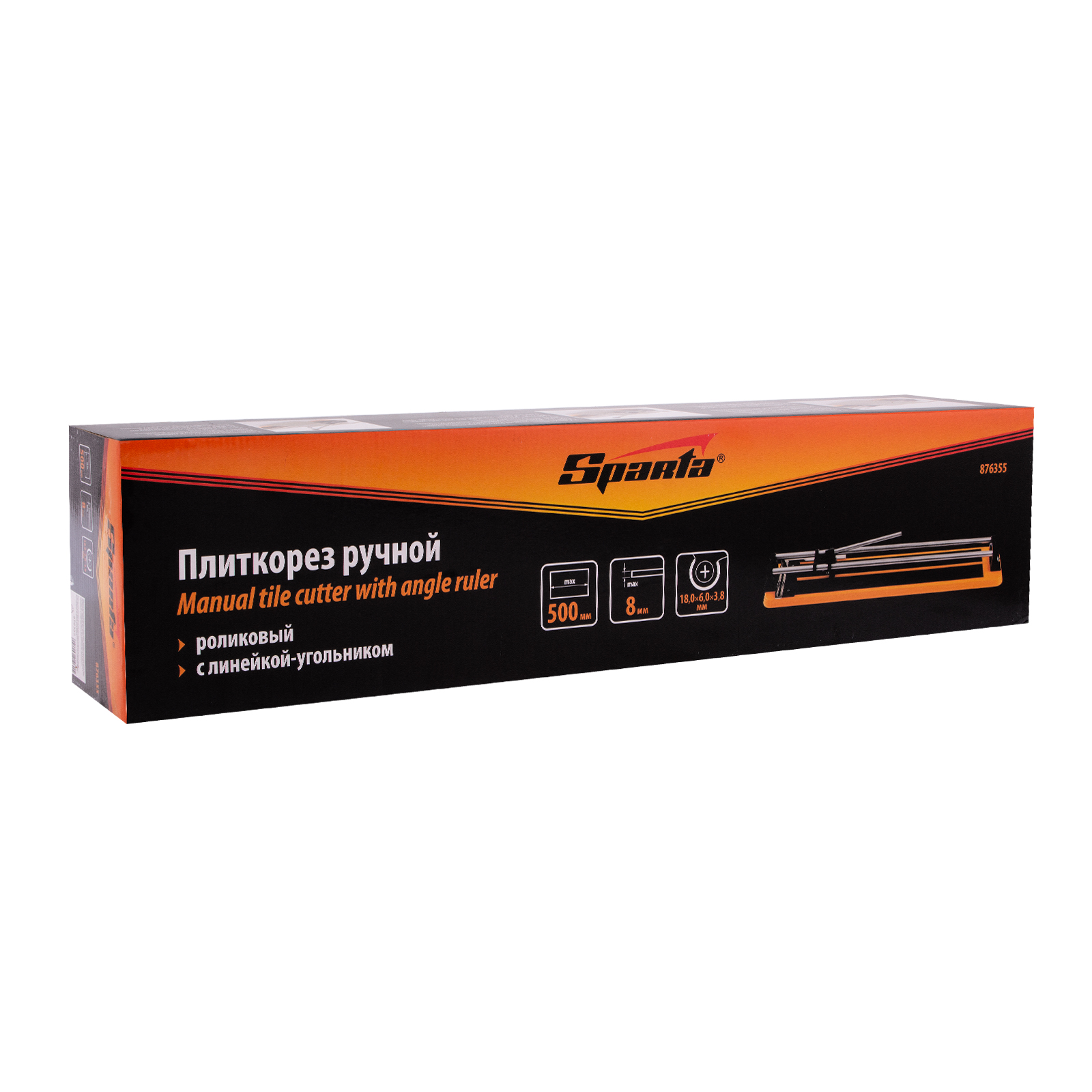 Роликовый плиткорез Sparta 876355 — ручной инструмент для резки керамической плитки длиной до 500 мм и толщиной до 8 мм. Используется во время проведения отделочных работ.