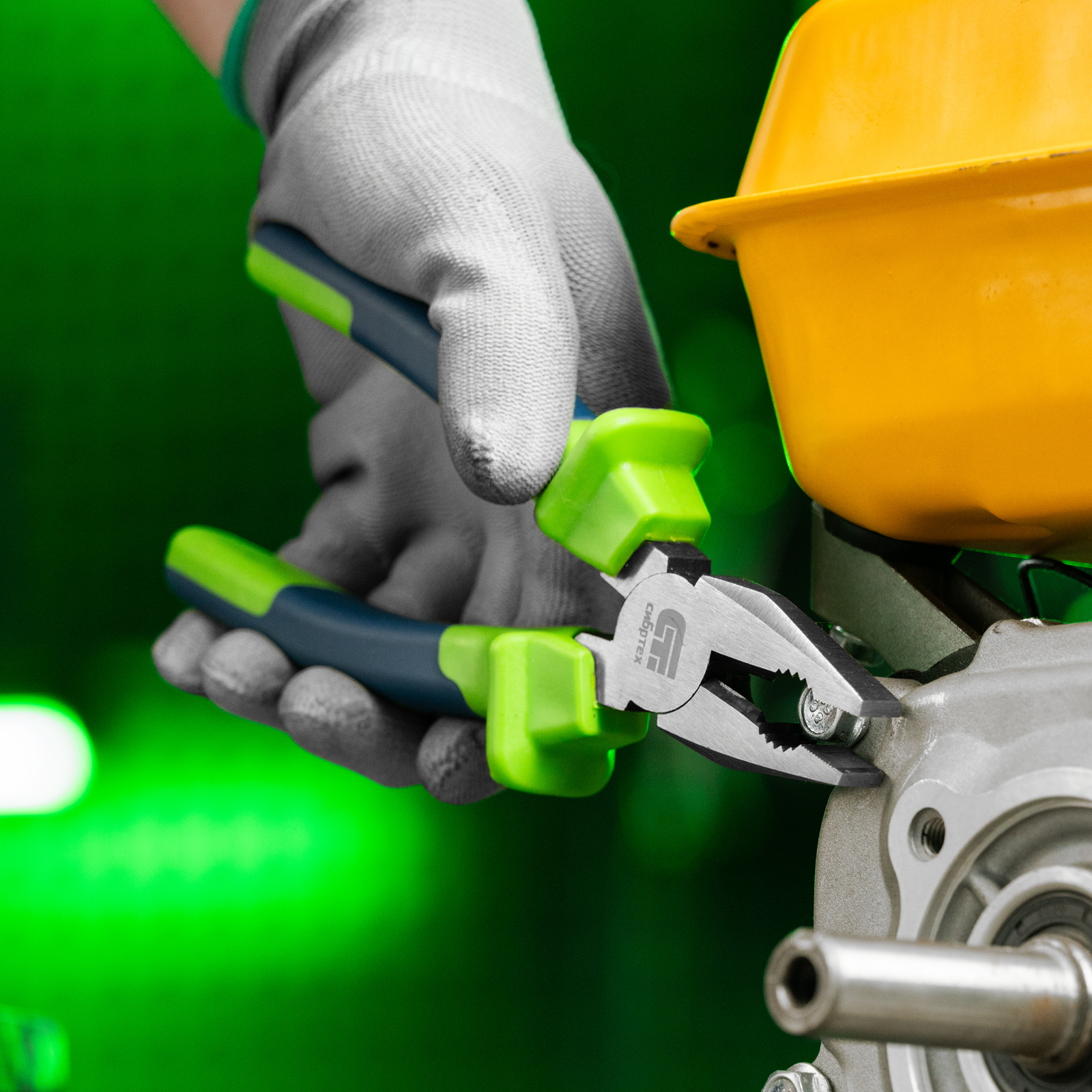 Комбинированные плоскогубцы Сибртех 17052 длиной 200 мм, с двухкомпонентными рукоятками, предназначены для перекусывания проволоки и захвата крепежа, прутков и других деталей. Будут полезны слесарю и монтажнику во время наладки оборудования, ремонта сантехники и выполнения других работ.