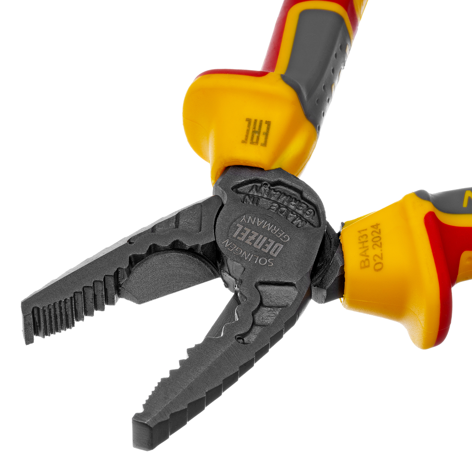 Комбинированные плоскогубцы Denzel 17085 длиной 165 мм, с диэлектрическими трехкомпонентными рукоятками, выдерживающими до 1000 В, предназначены для выполнения работ с токопроводящими элементами. С их помощью можно захватить или согнуть мелкие и крупные детали, перекусить проволоку или перерезать провод. Инструмент подходит для работы с мягкой проволокой (алюминиевой, медной, с пределом прочности 220 Н/мм2) диаметром до 4 мм, проволокой средней жесткости и гвоздями (750 Н/мм2) диаметром до 3,1 мм, и жесткой (предел прочности 1800 Н/мм2) толщиной до 2 мм. Также плоскогубцы можно использовать в качестве гаечного ключа. Инструмент незаменим для проведения слесарных и монтажных работ с различными компонентами и материалами. Внимание: перед началом работ следует отключить напряжение!