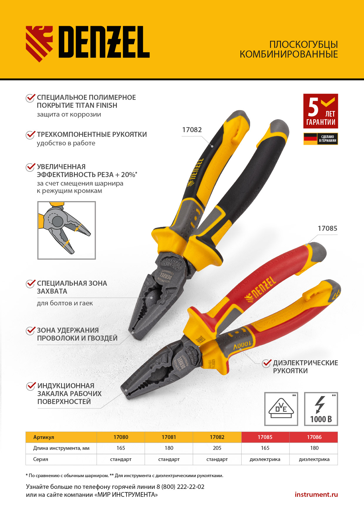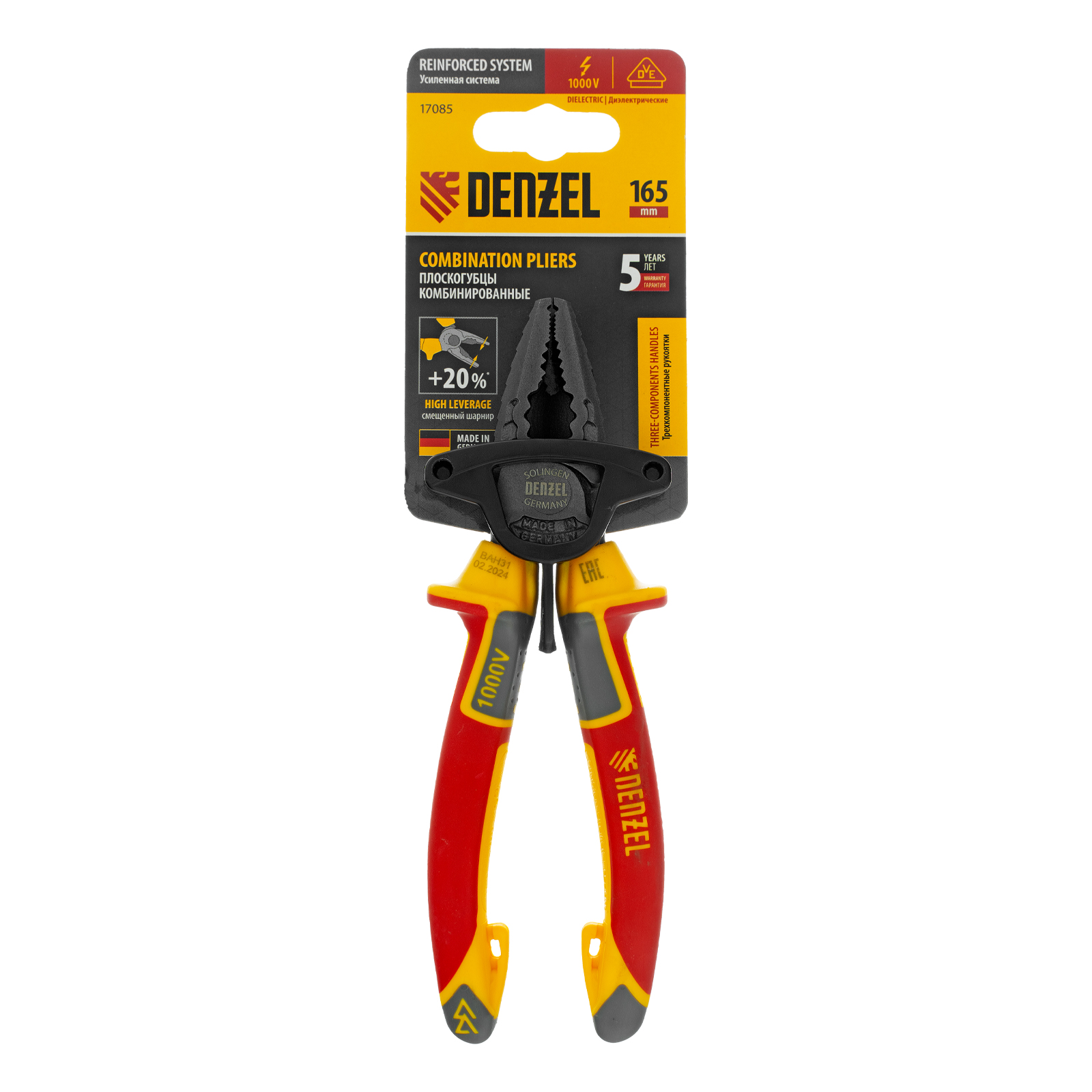 Плоскогубцы комбинированные, диэлектрические трехкомпонентные рукоятки до 1000 В, 165 мм Denzel в Москве