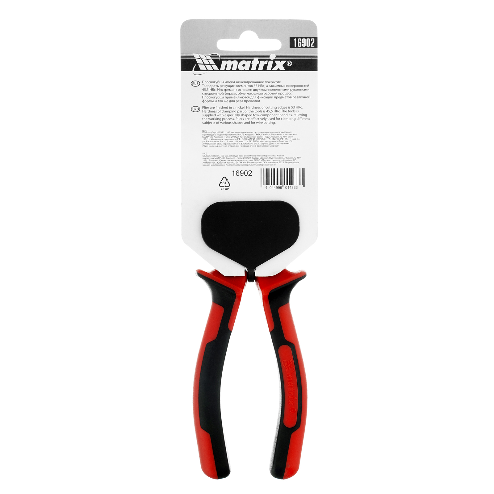 Плоскогубцы Nickel, 160 мм, никелированные, двухкомпонентные рукоятки Matrix в Москве