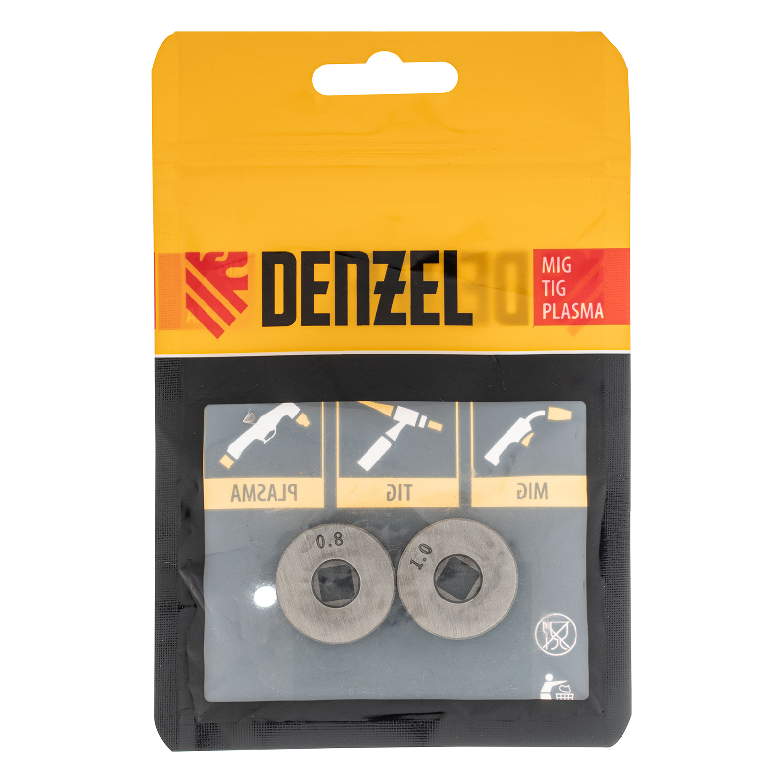 Подающий ролик Denzel 93653 с U-профилем, 2 шт. в упаковке, с посадкой «квадрат», — элемент конструкции сварочного аппарата, предназначенный для протягивания флюсовой проволоки диаметром 0,8-1 мм. Совместим с моделями 94321, 94322, а также со сварочными полуавтоматами других торговых марок.