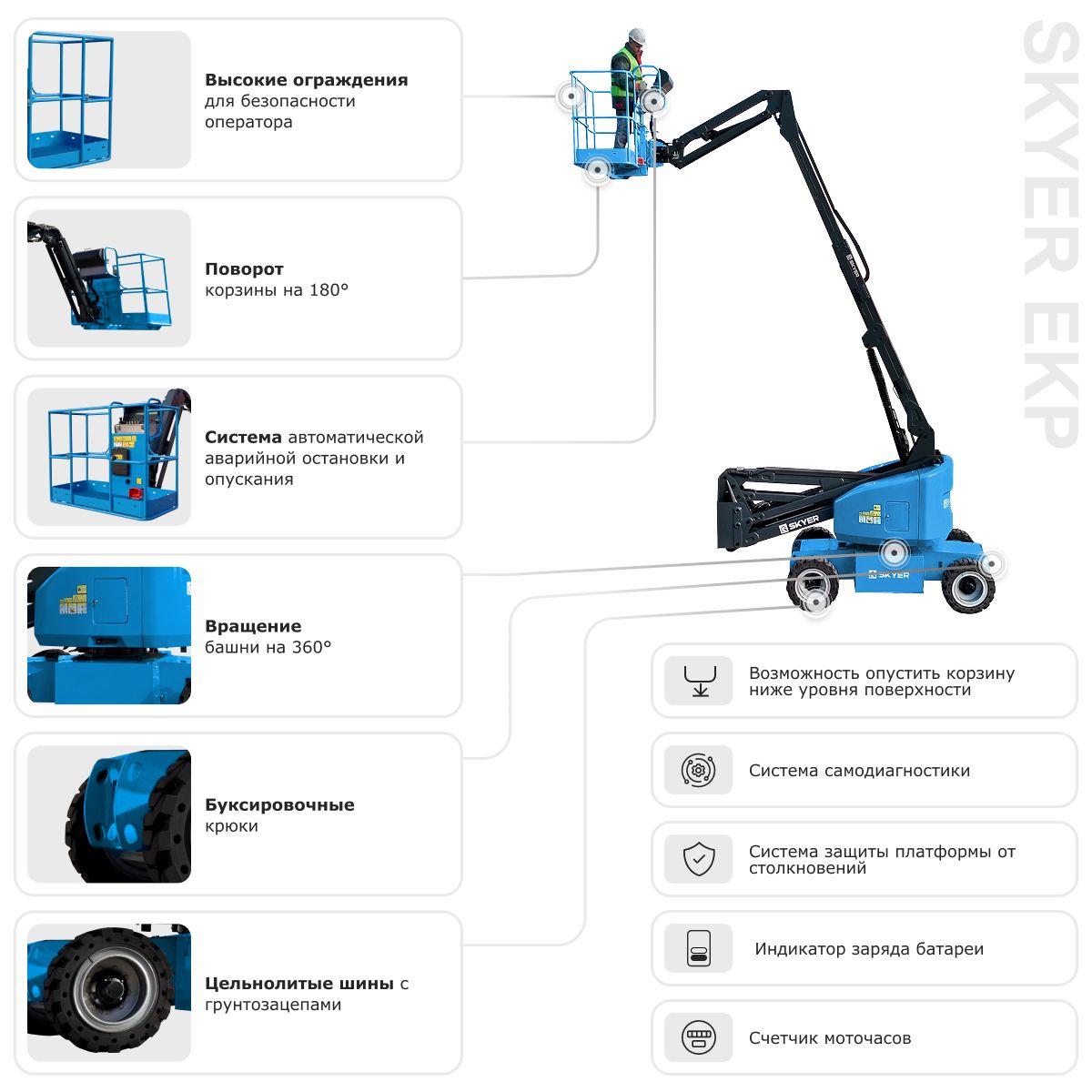 Подъемник самоходный электрический коленчатый SKYER EKP1623 в Москве