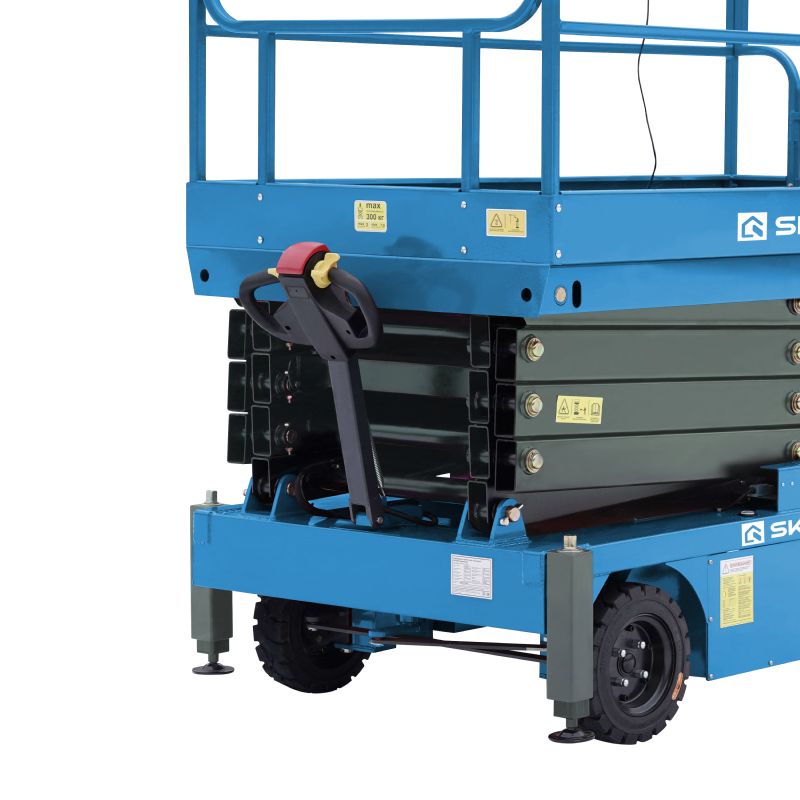 Этот подъемник отличается от обычных моделей электроприводной рукоятью. Больше не нужно толкать тяжелый подъемник по объекту — он сам едет туда, куда направите!
