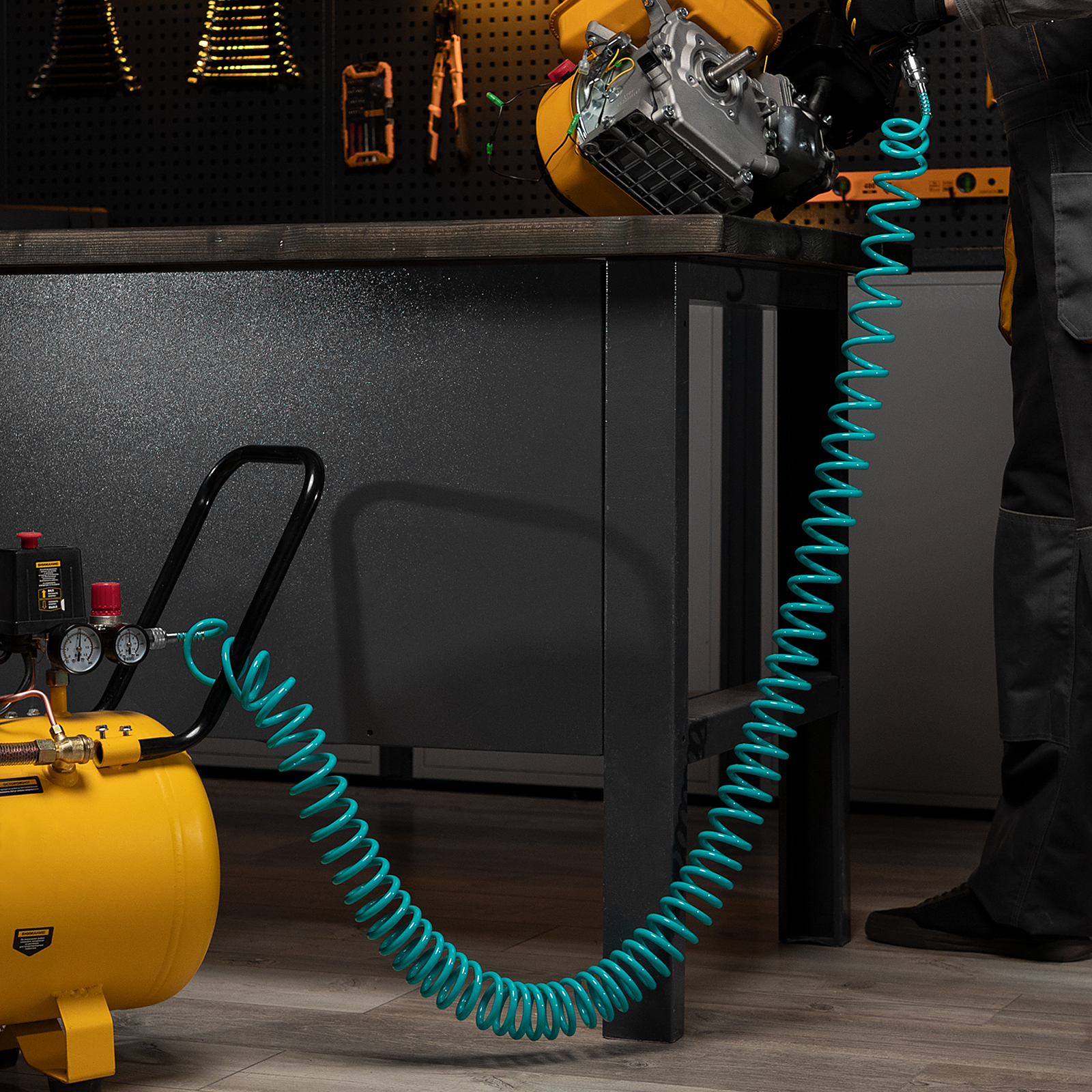 - Длина 10 м — можно работать на значительном удалении от компрессора.