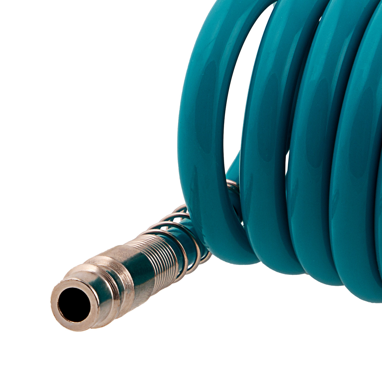 Профессиональный полиуретановый спиральный шланг Stels 57007 из сырья BASF, длиной 10 м, с быстросъемными соединениями, предназначен для подключения пневматического оборудования. Благодаря увеличенной толщине рукав выдерживает давление до 24 бар, поэтому подходит для мощного компрессорного оборудования. Используется в строительстве и на производственных предприятиях.