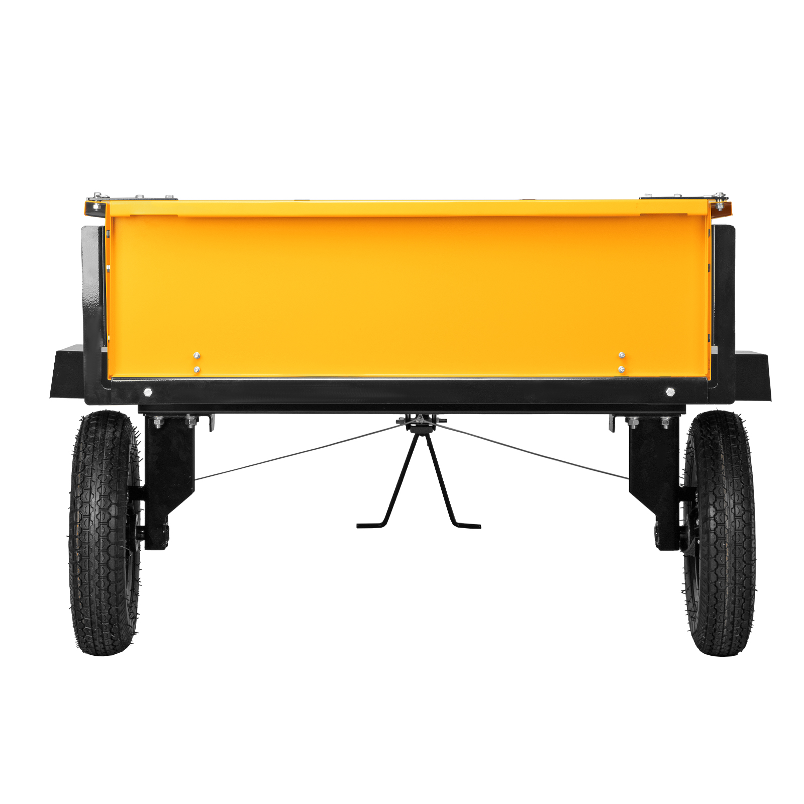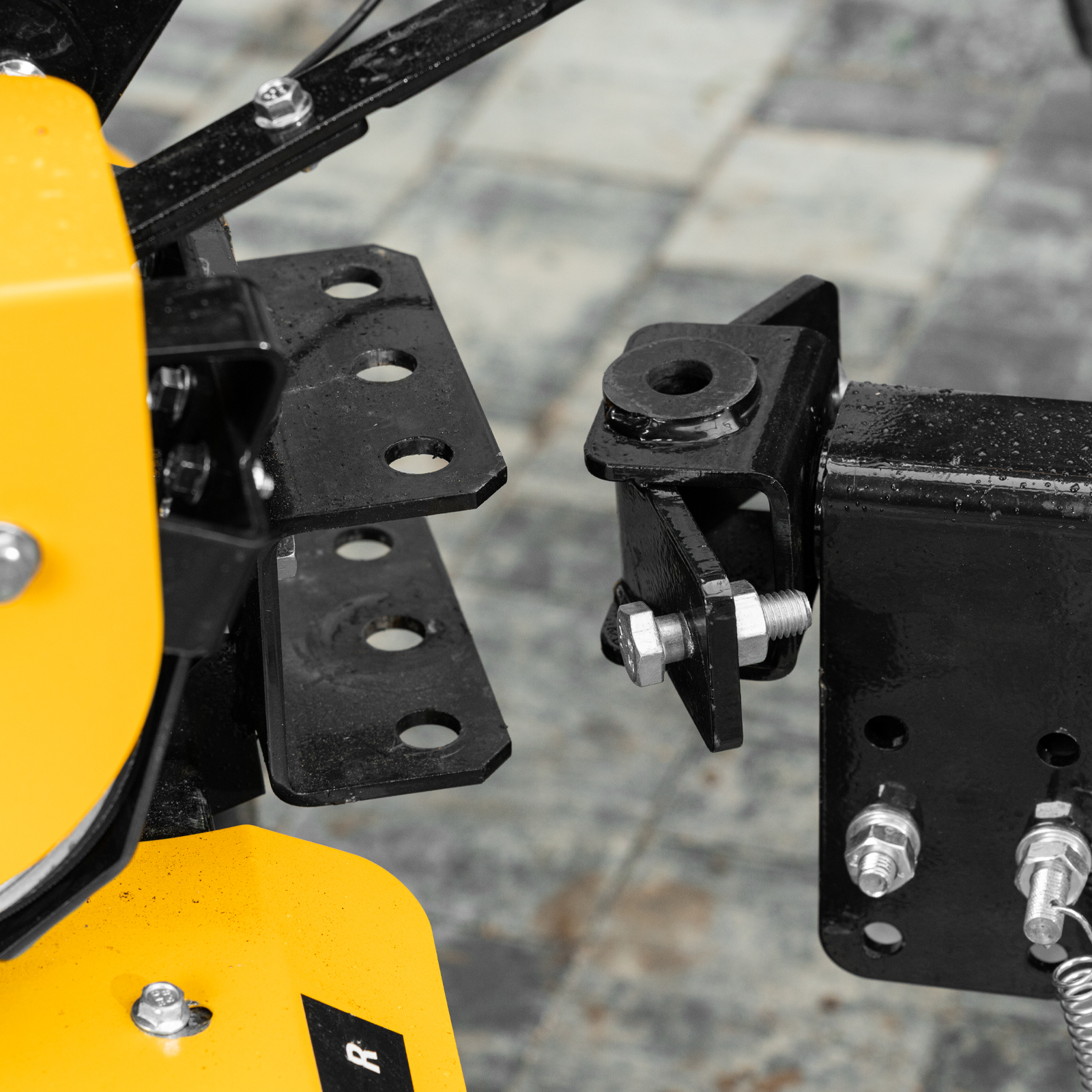 - Продуманная конструкция — пружинная подножка сцепки обеспечивает устойчивость прицепа, не соединенного с мотоблоком.