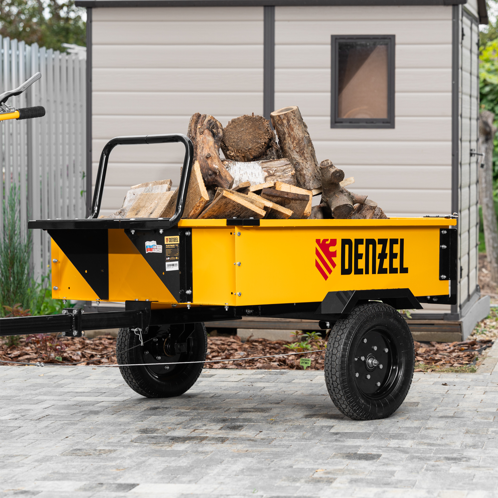 Прицеп для мотоблока TT-500, оцинк., груз. 500 кг, рег. сцепка, колеса 4.00-10, в упаковке Denzel в Москве