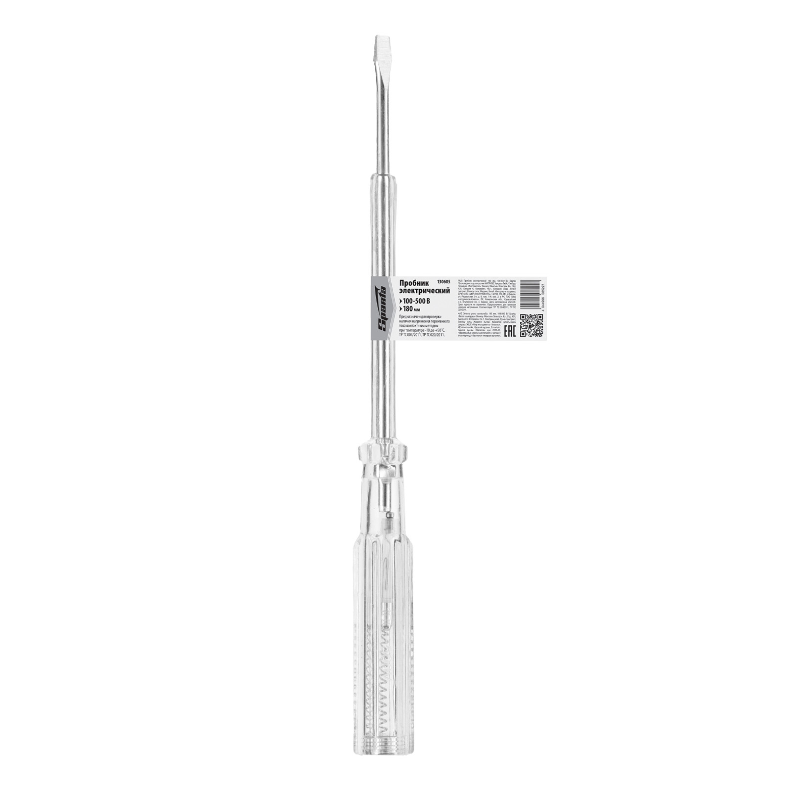 Электрический пробник Sparta 130605 длиной 180 мм, с чувствительностью 100-500 В, служит для определения напряжения в бытовой электросети бесконтактным методом. Будет полезен частным мастерам в ходе ремонта и подключения электросетей и приборов.