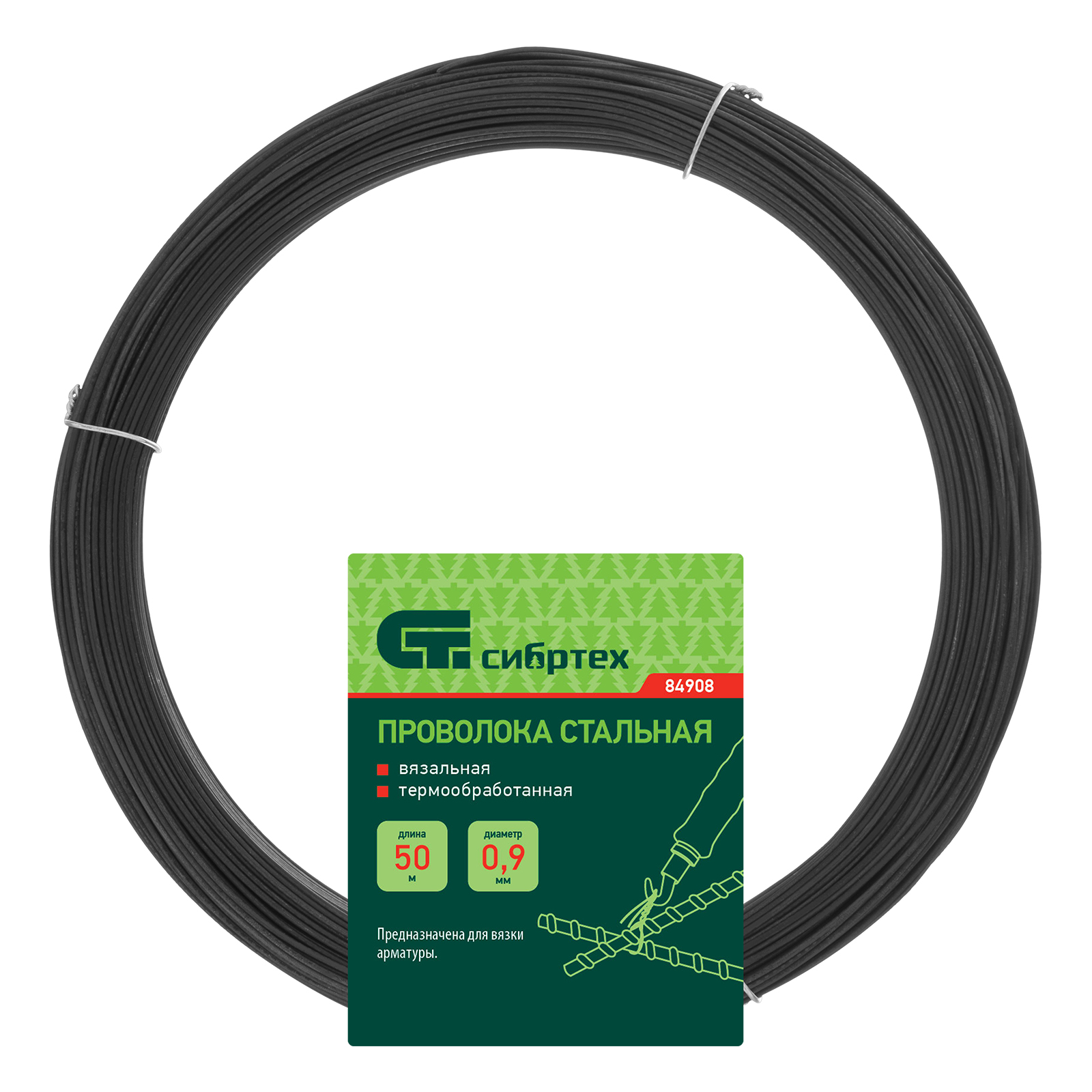Проволока стальная 50 м, вязальная, термообработанная 0.9 мм Сибртех в Москве