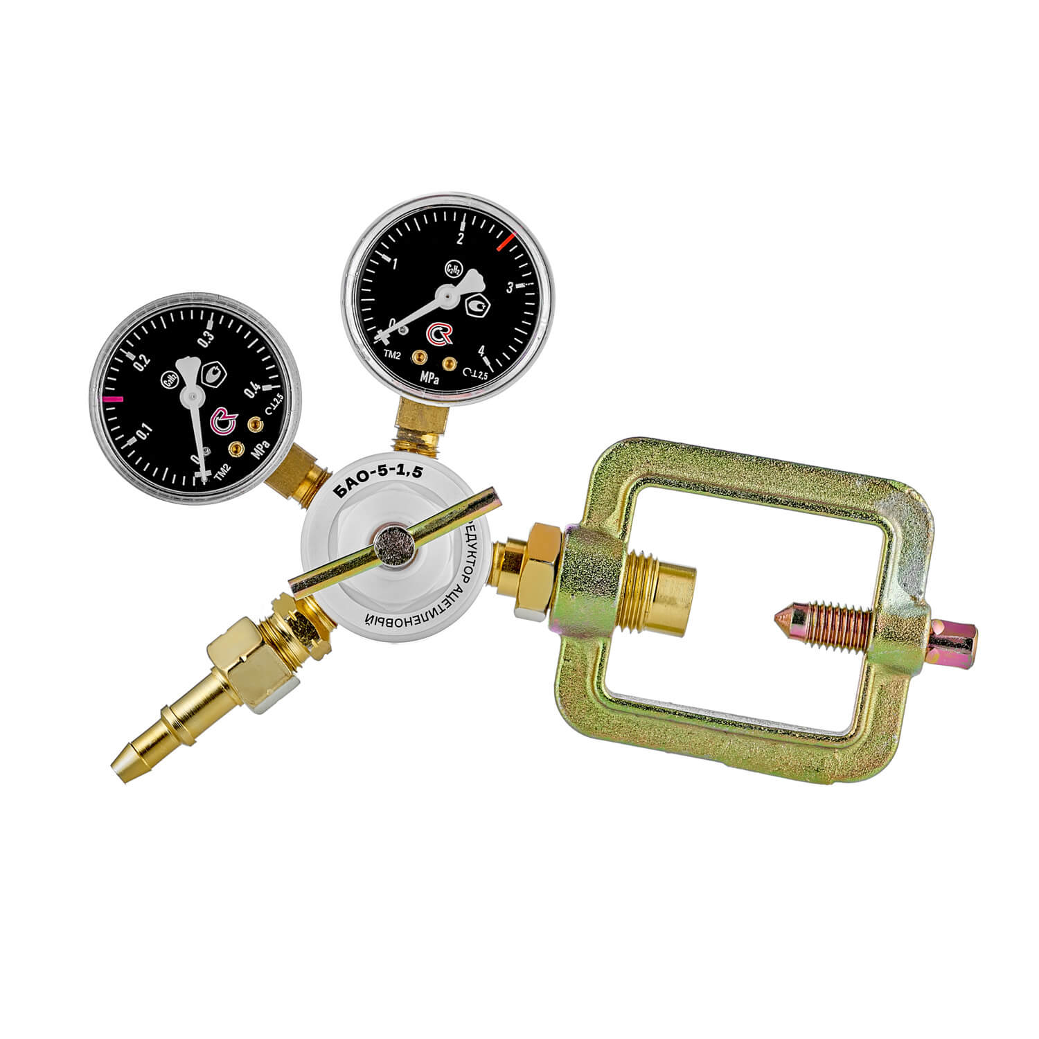 Редуктор ацетиленовый БАО-5-1,5 предназначен для понижения давления газа, поступающего из баллона, и автоматического поддержания постоянным заданного рабочего давления при газопламенной обработке. Производит тонкую настройку рабочего давления.