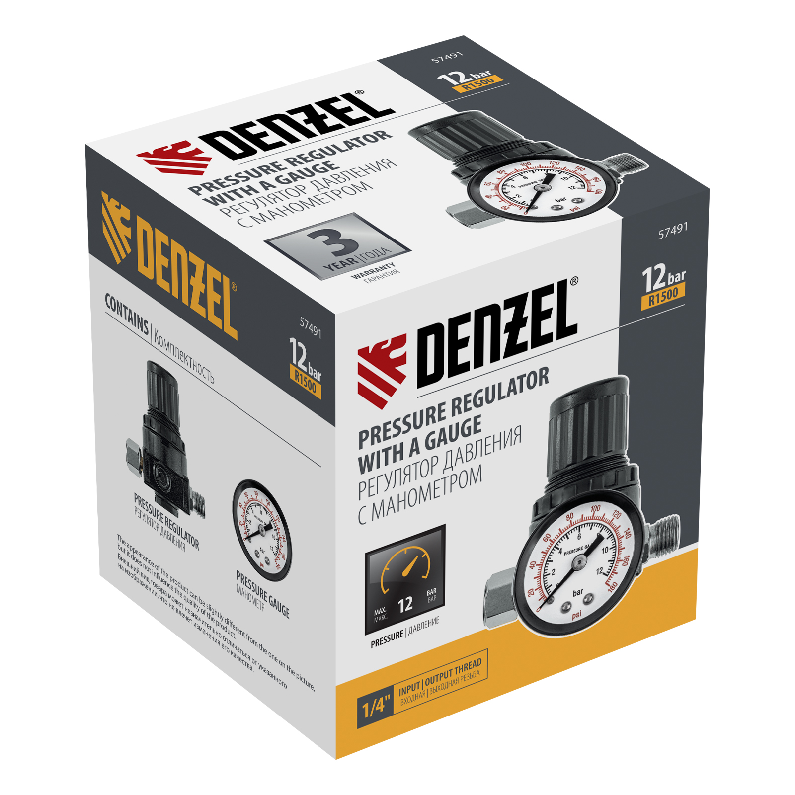 Регулятор давления с манометром R1500, 12 бар, 1/4" Denzel в Москве
