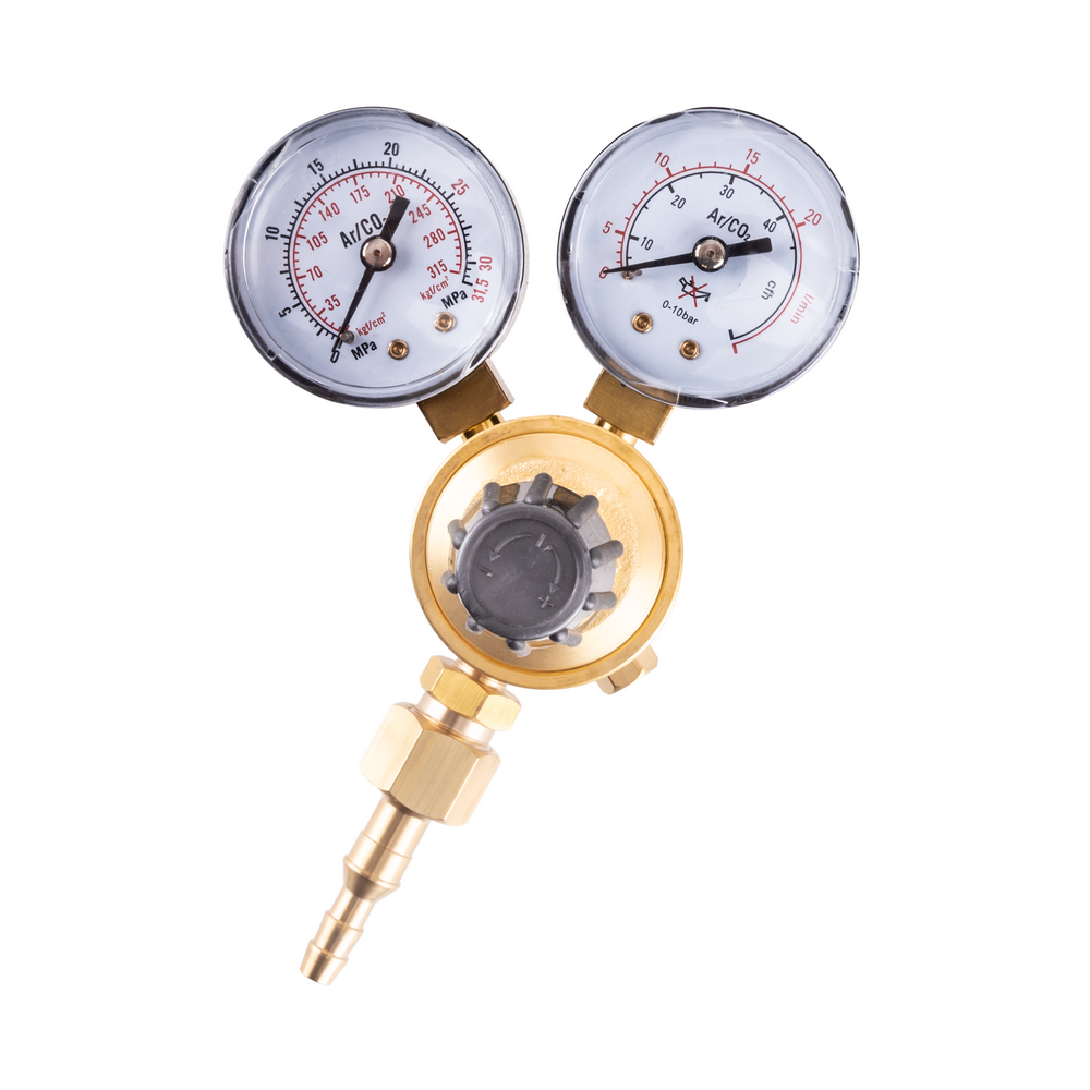 Регулятор расхода газа WR550 mini предназначен для понижения давления газа и автоматического поддержания постоянным заданного расхода при питании постов и установок электросварки в среде защитных газов. Модель предназначена для работы с химическим соединением аргона и углекислого газа. Корпус оснащен манометром и расходомером, которые позволяют точно отрегулировать расход газа на выходе из баллона. Регулятор также оснащен вентилем для регулировки подачи газа, что делает процесс газосварки удобным и качественным.БЕЗОПАСНОСТЬ РАБОЧЕГО ПРОЦЕССА: Корпус из латуни обеспечивает безопасность в работе. Материал прочен и не дает искр при использовании. Надежное крепление не допускает протечки газа во внешнюю среду.ВЫСОКАЯ ЭФФЕКТИВНОСТЬ: Газовый регулятор обеспечивает меньший расход рабочих газов при газосварочном процессе, поддерживает заданный уровень давления до окончания работы и экономит газ в баллоне.ВНЕШНИЕ РЕГУЛИРОВКИ: Регулятор имеет вентиль регулировки подачи газа. Для качественного выполнения газосварочных работ необходимо создать рабочую среду и контролировать расход газа, поступающий из баллона. Вентиль снижает или понижает поступающее давление - можно настроить необходимое рабочее давление на выходе и проконтролировать процесс с помощью манометра.ВСТРОЕННЫЙ МАНОМЕТР: Встроенный манометр давления на входе показывает давление поступающего из баллона газа. С помощью манометра удобно отслеживать уровень давления и задать необходимый объём для работы. Регулировка давления подачи газа осуществляется с помощью наружного вентиля.КОМПЛЕКТАЦИЯ: Регулятор WR550 mini – 1 шт.; Индивидуальная упаковка – 1 шт.; Инструкция по эксплуатации – 1 шт.*Производитель оставляет за собой право менять комплектацию оборудования.