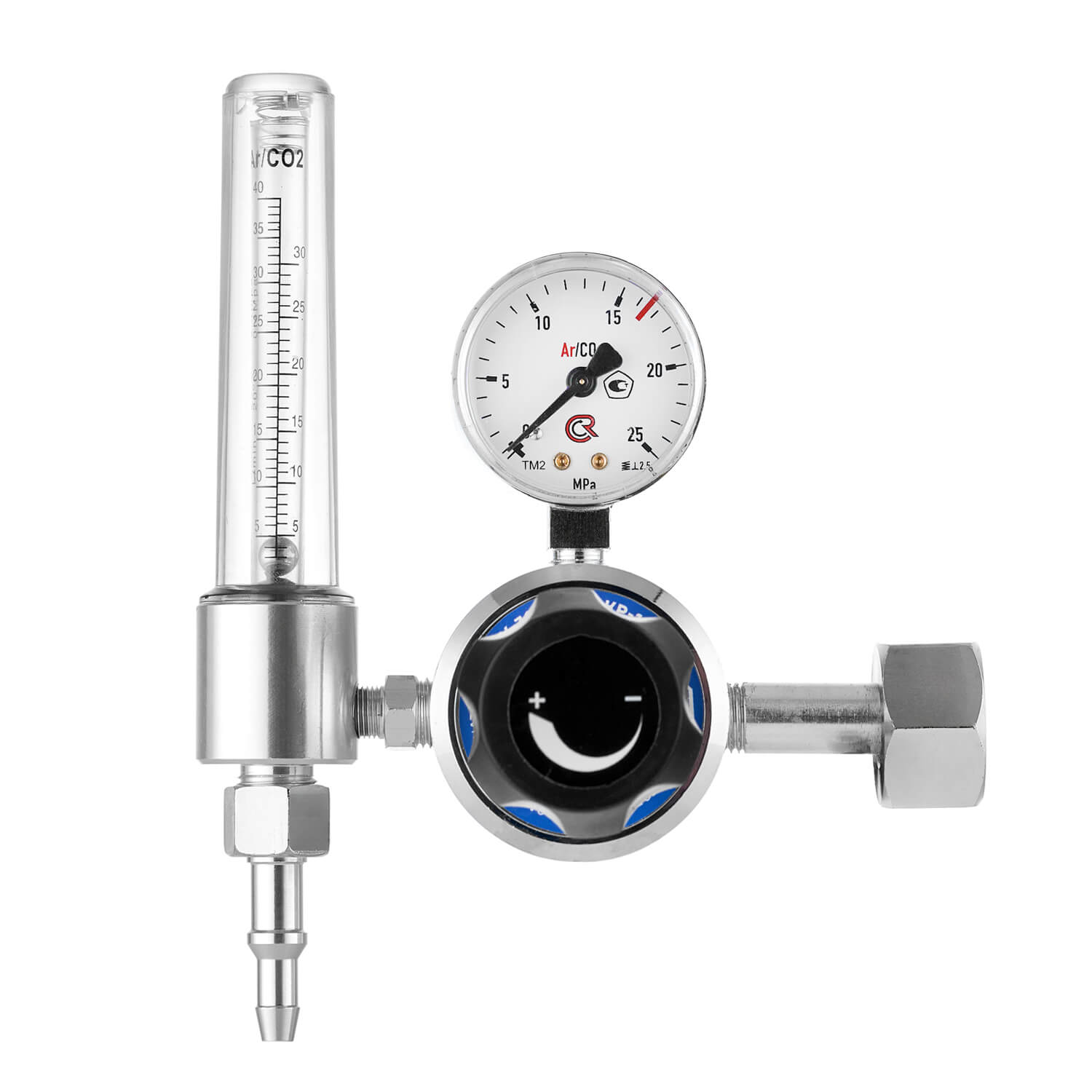 - Корпус регулятора изготовлен из латуни со специальным никелированным покрытием. Колба ротаметра изготовлена из прочного пластика, которая имеет две шкалы Ar/CO2.