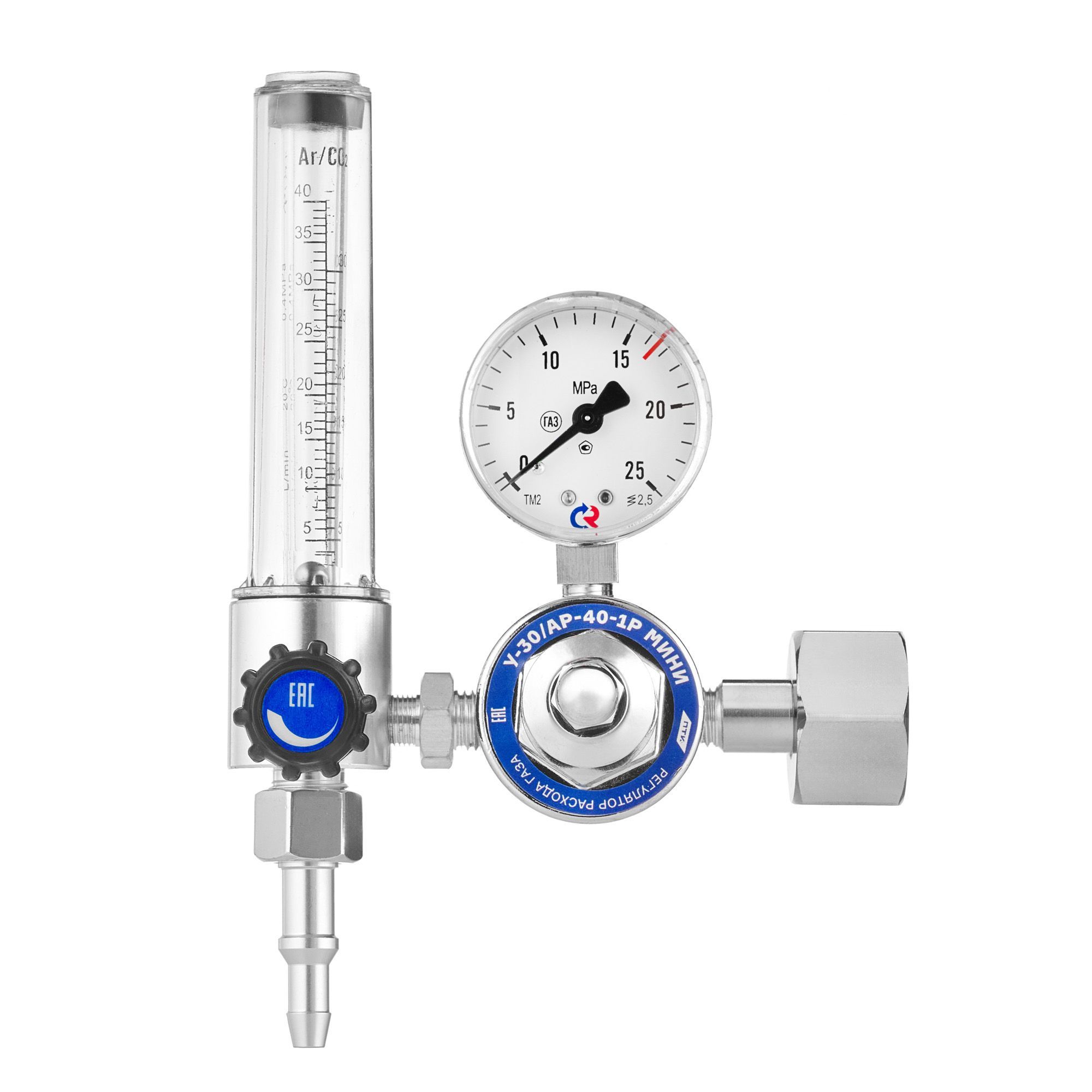 Регулятор расхода газа У-30/АР-40-1Р МИНИ предназначен для понижения газа и автоматического поддержания постоянным заданного расхода при питании постов и установок в среде защитных газов.