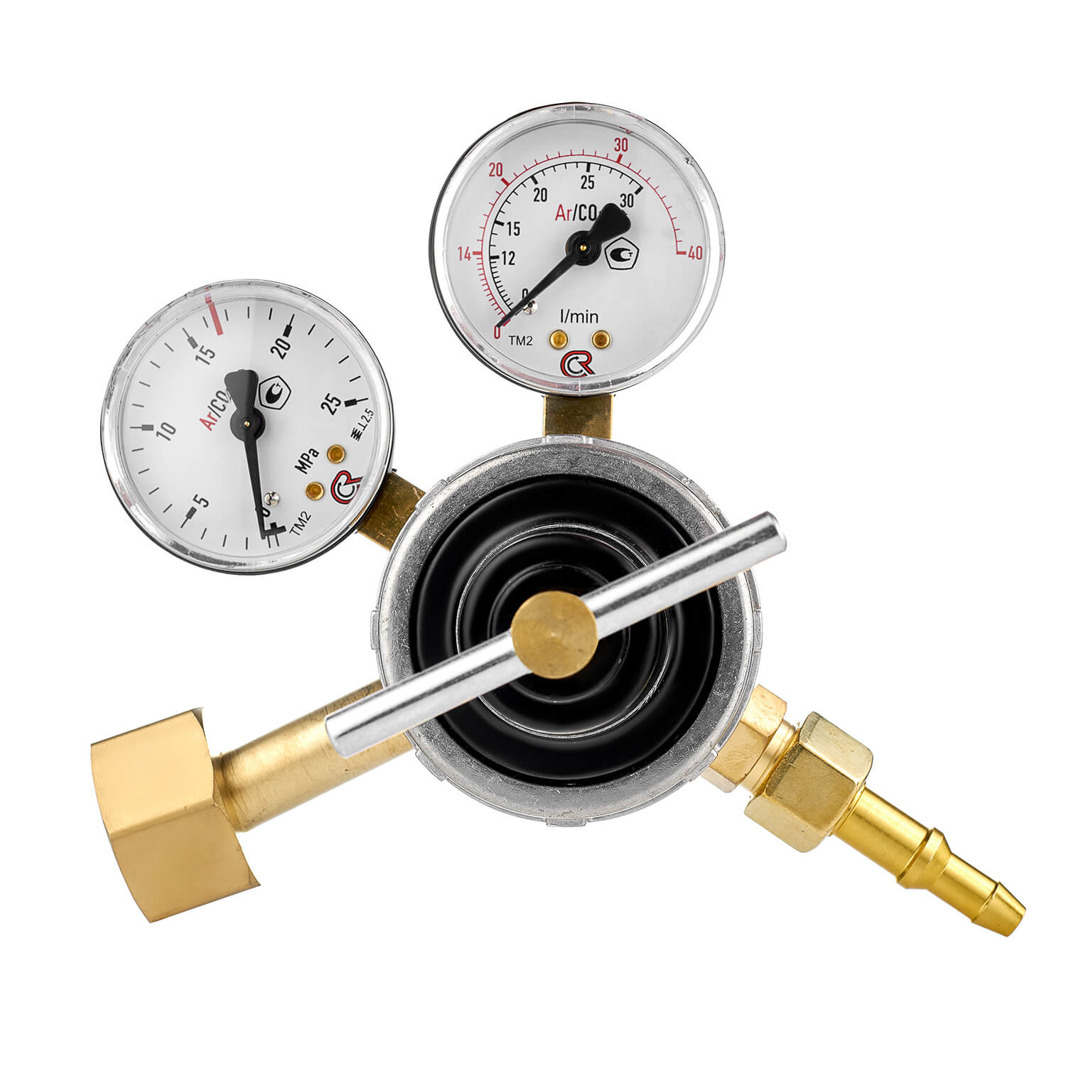 Регулятор расхода газа У-30/АР-40-4 с манометром высокого давления, который отображает показания давления в баллоне, и манометром-расходомером для настройки расхода углекислого газа или аргона предназначен для понижения давления газа и автоматического поддержания постоянным заданного расхода при питании постов и установок в среде защитных газов.
