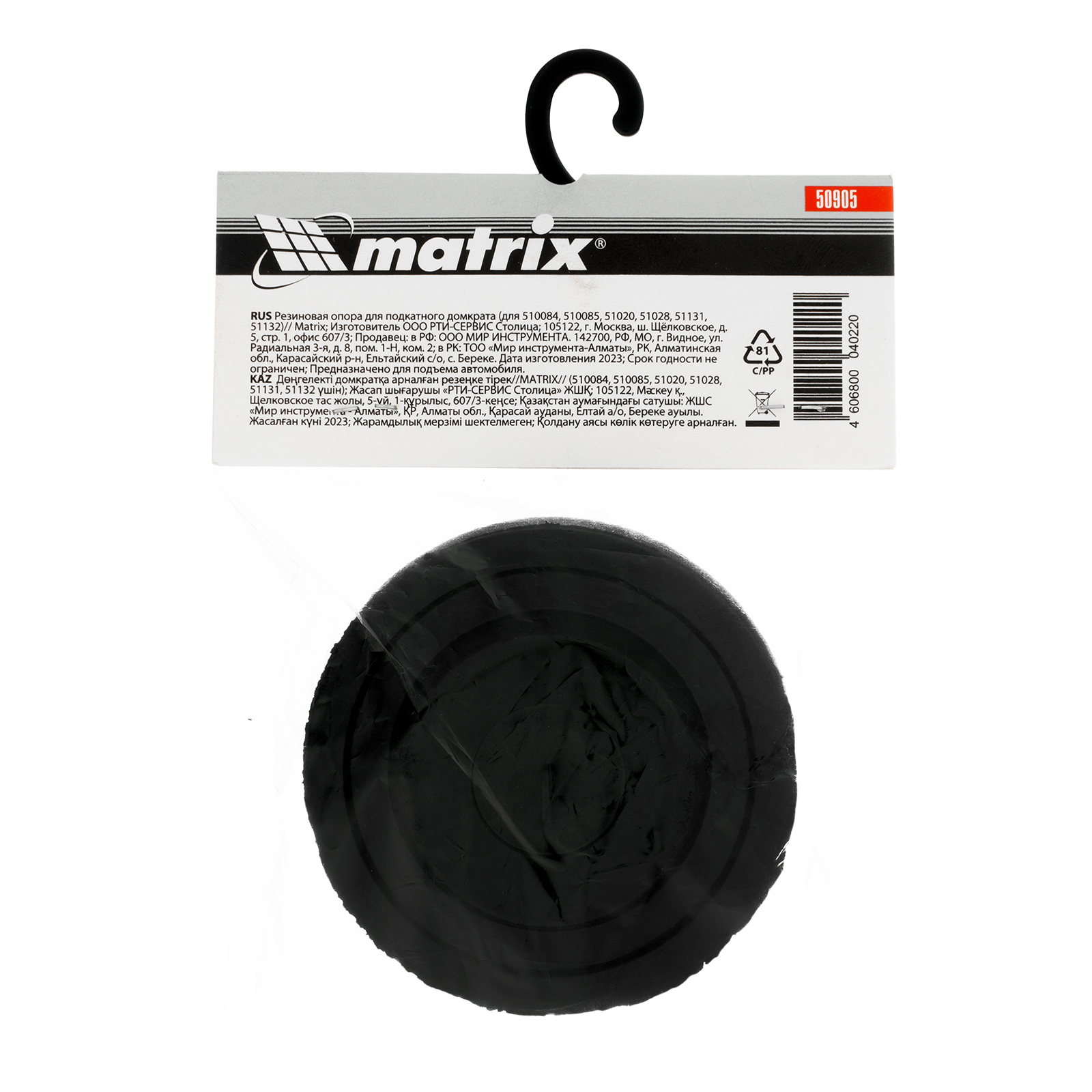Резиновая опора Matrix 50905 подходит к домкратам 510084, 510085, 51020, 51028, 51131, 51132, 51127, 51152, 51040. Она используется в качестве защиты для верхней части домкрата и кузова автомобиля, позволяет надежно зафиксировать транспортное средство при подъеме без риска появления царапин и вмятин.