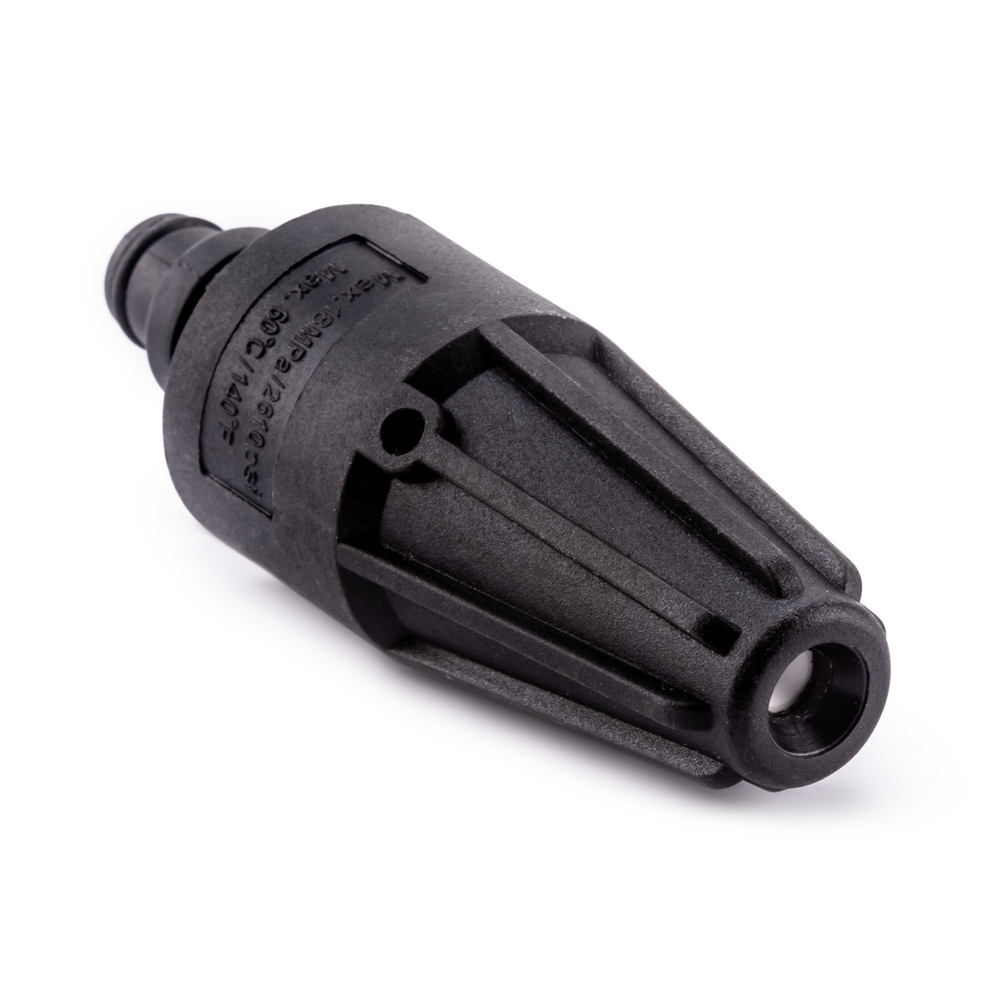 Роторная турбонасадка KVAZARRUS AG1175 формирует точечную струю с вращением за счет роторного механизма. Увеличенное ударное давление позволяет существенно повысить эффективность очистки, при этом, за счет вращения с помощью роторного механизма обеспечивается также большее пятно контакта, в сравнении с работой традиционного точечного сопла, что в свою очередь, позволяет увеличить площадь очищаемой поверхности и скорость очистки. Подходит для удаления стойких загрязнений с твердых поверхностей, например, присохшей грязи с суглинком и т.п. Роторная турбонасадка устанавливается на удлинительный адаптер пистолета-распылителя AG1175 и совместима с мойками высокого давления KVAZARRUS K3, K4, K5 Base, K5 Standart.