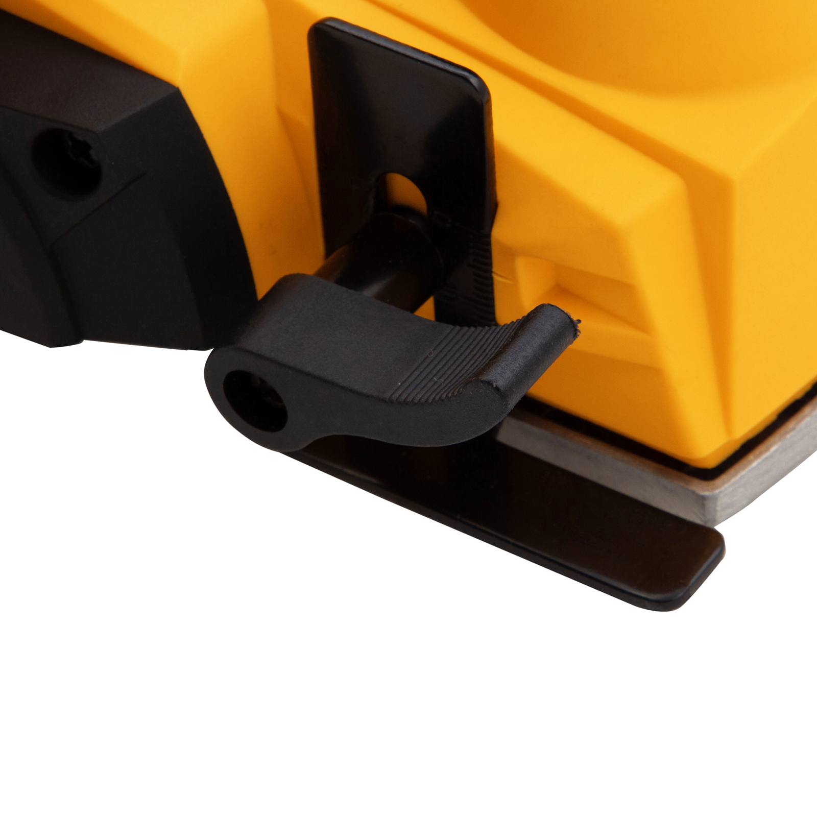 - Комфортная работа — направление выброса стружки переключается одним рычагом, параллельная направляющая и ограничитель глубины выборки четверти помогают точно вести рубанок.