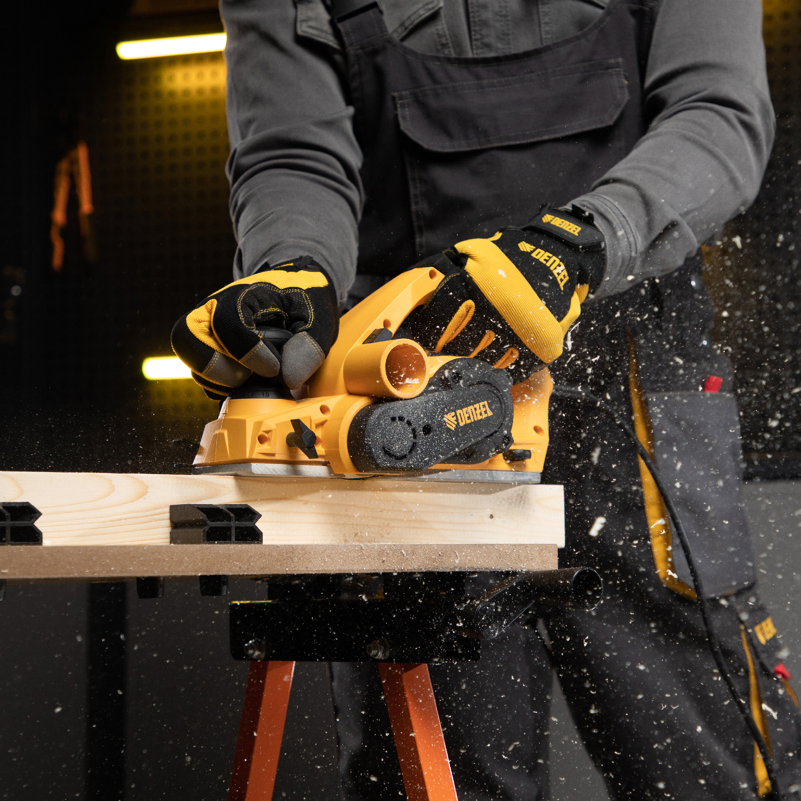 Электрический рубанок Denzel EP-82 27801 мощностью 720 Вт обеспечивает ширину обработки 82 мм и предназначен для строгания плоских деревянных поверхностей, снятия фасок, выборки четверти. Частота вращения барабана составляет 16000 об/мин, выборка четверти производится на глубину до 18 мм, что позволяет эффективно решать поставленные задачи. Инструмент подходит для бытового использования.