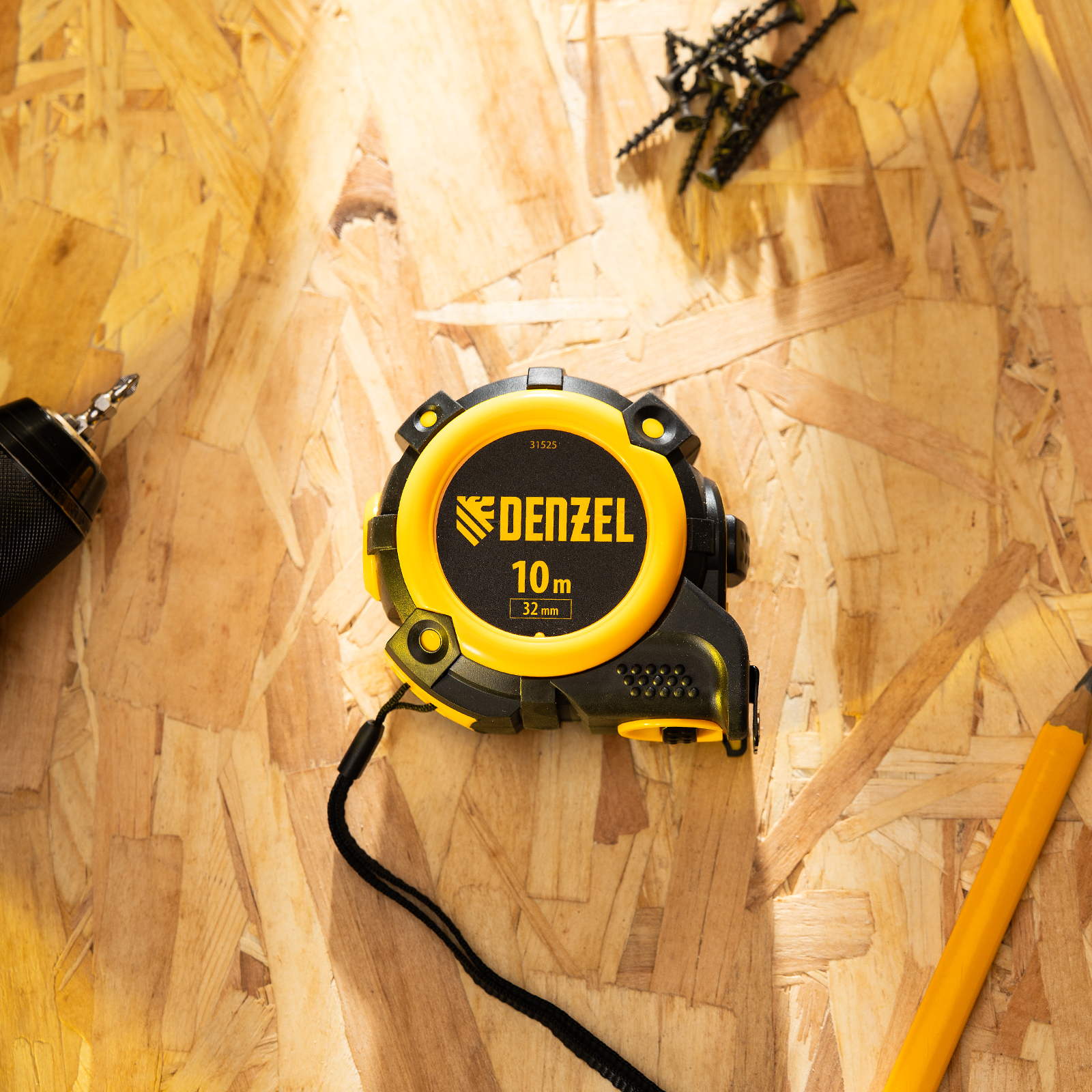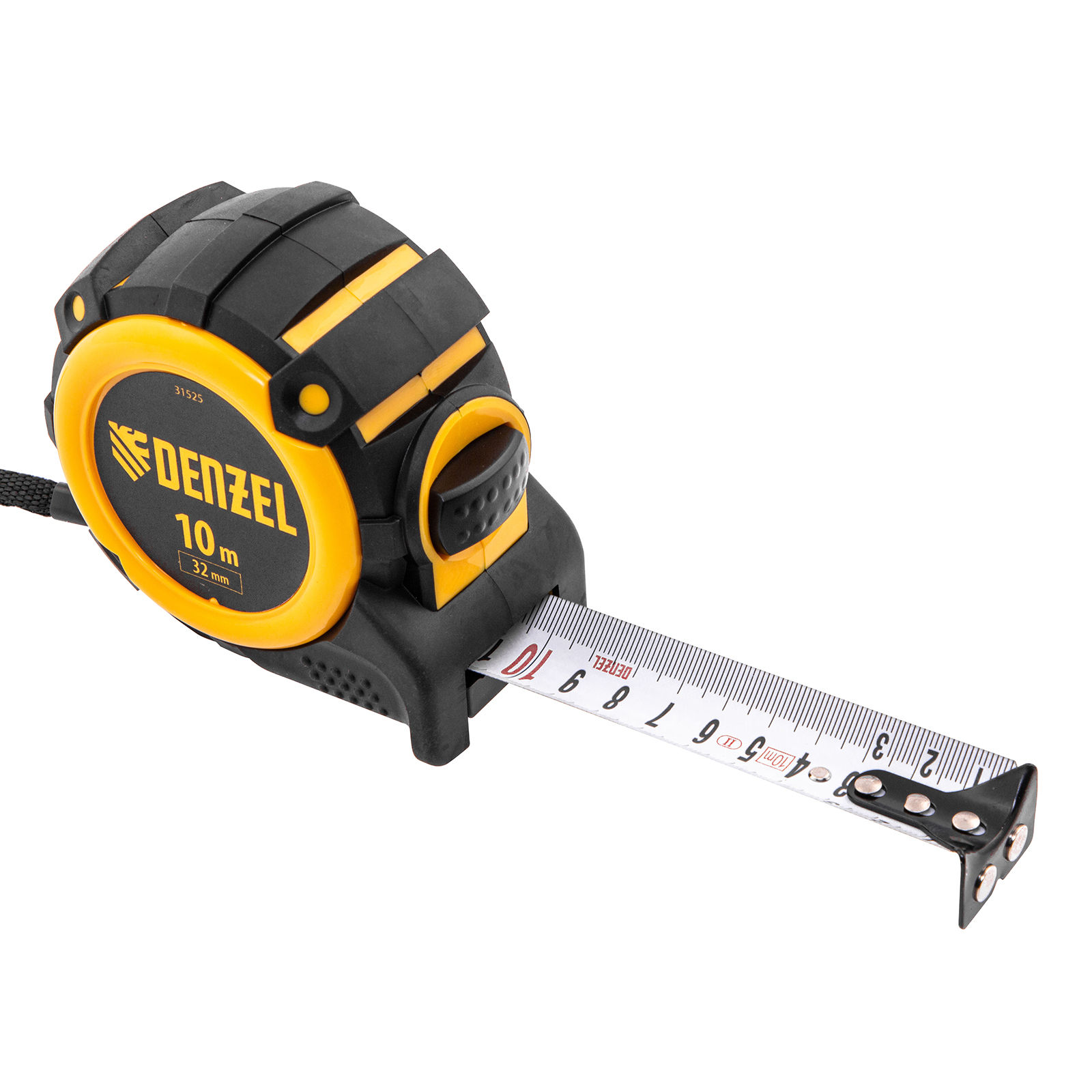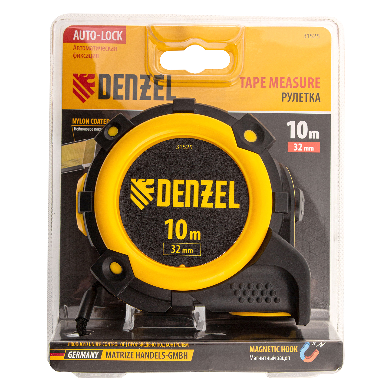 Рулетка 10м х 32мм, автоматич. фиксац., нейлон. покрытие, магнит. зацеп, двухстор. разметка Denzel в Москве