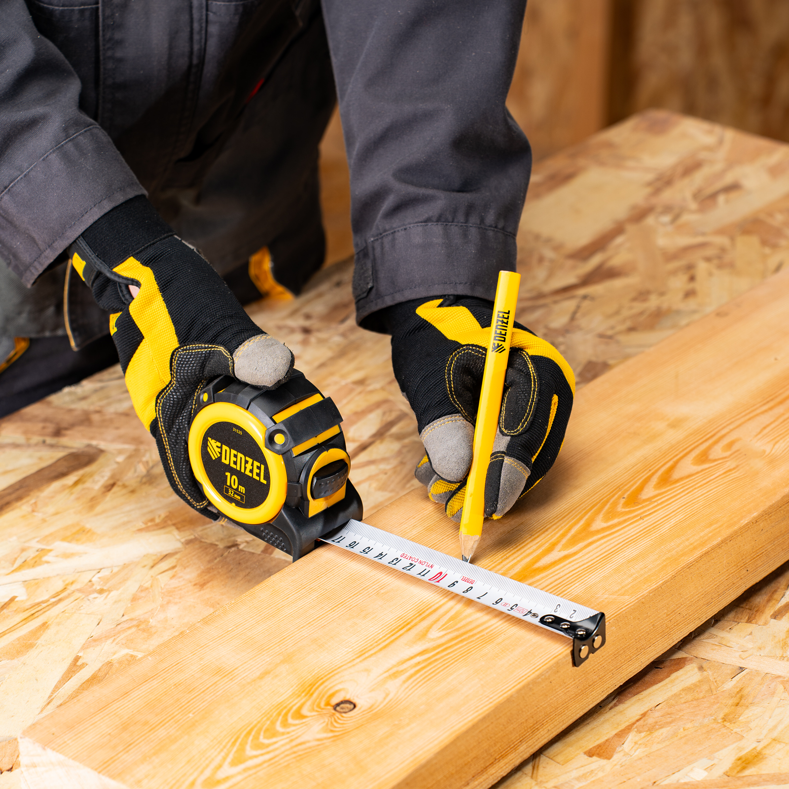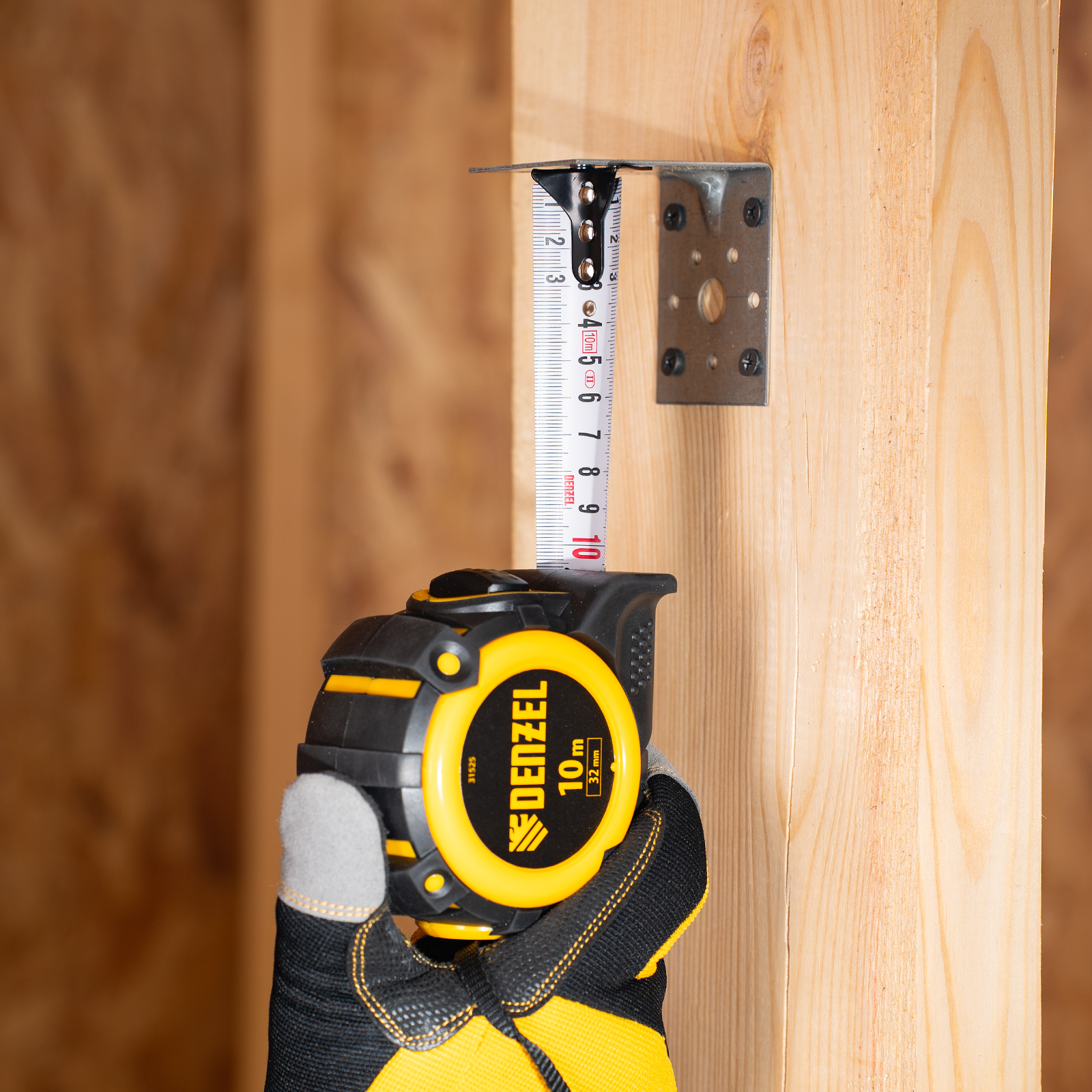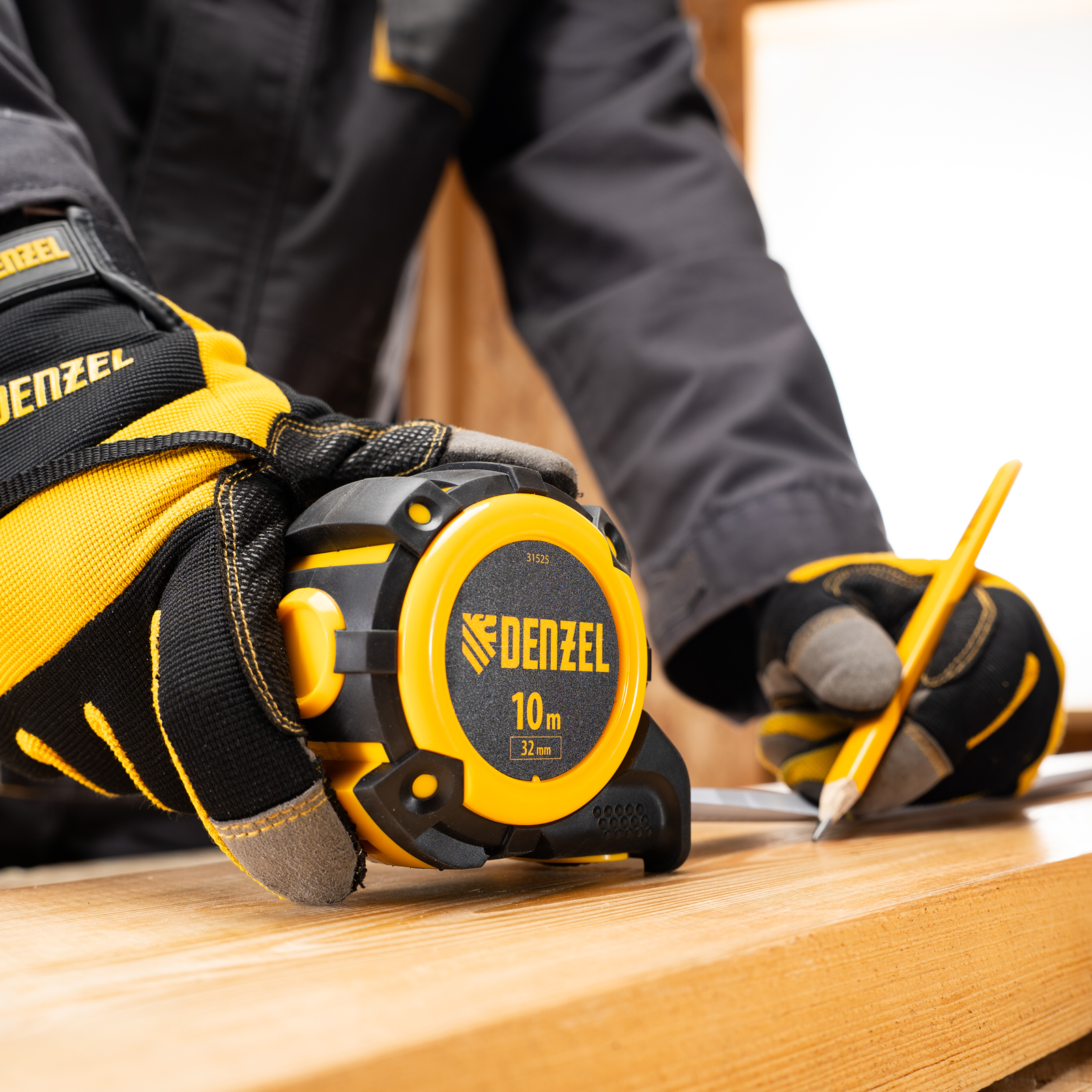 Рулетка 10м х 32мм, автоматич. фиксац., нейлон. покрытие, магнит. зацеп, двухстор. разметка Denzel в Москве