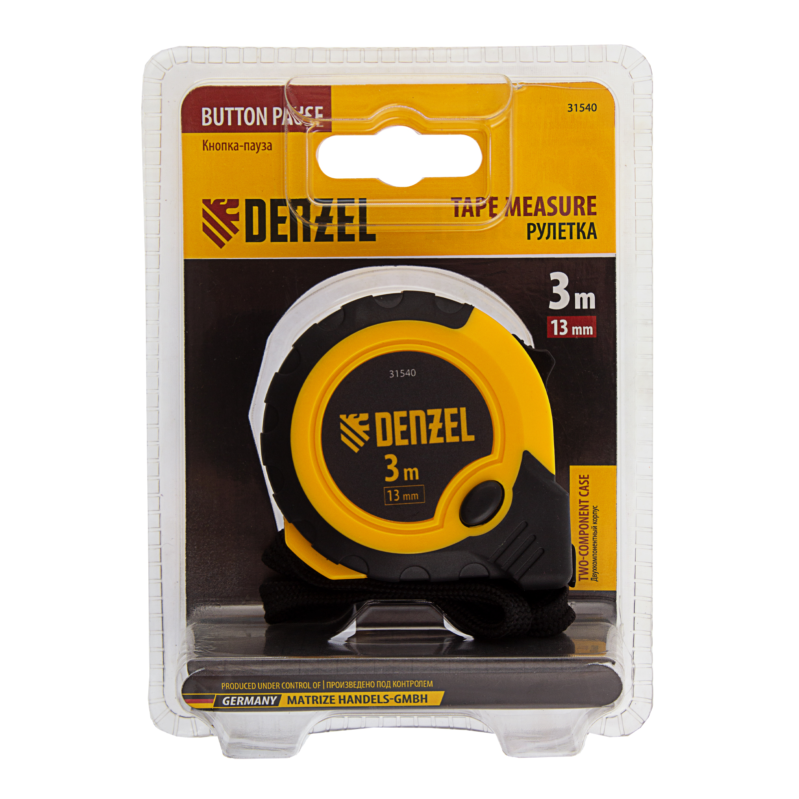 Рулетка 3м х 13мм, двухкомп. корпус, кнопка-пауза Denzel в Москве