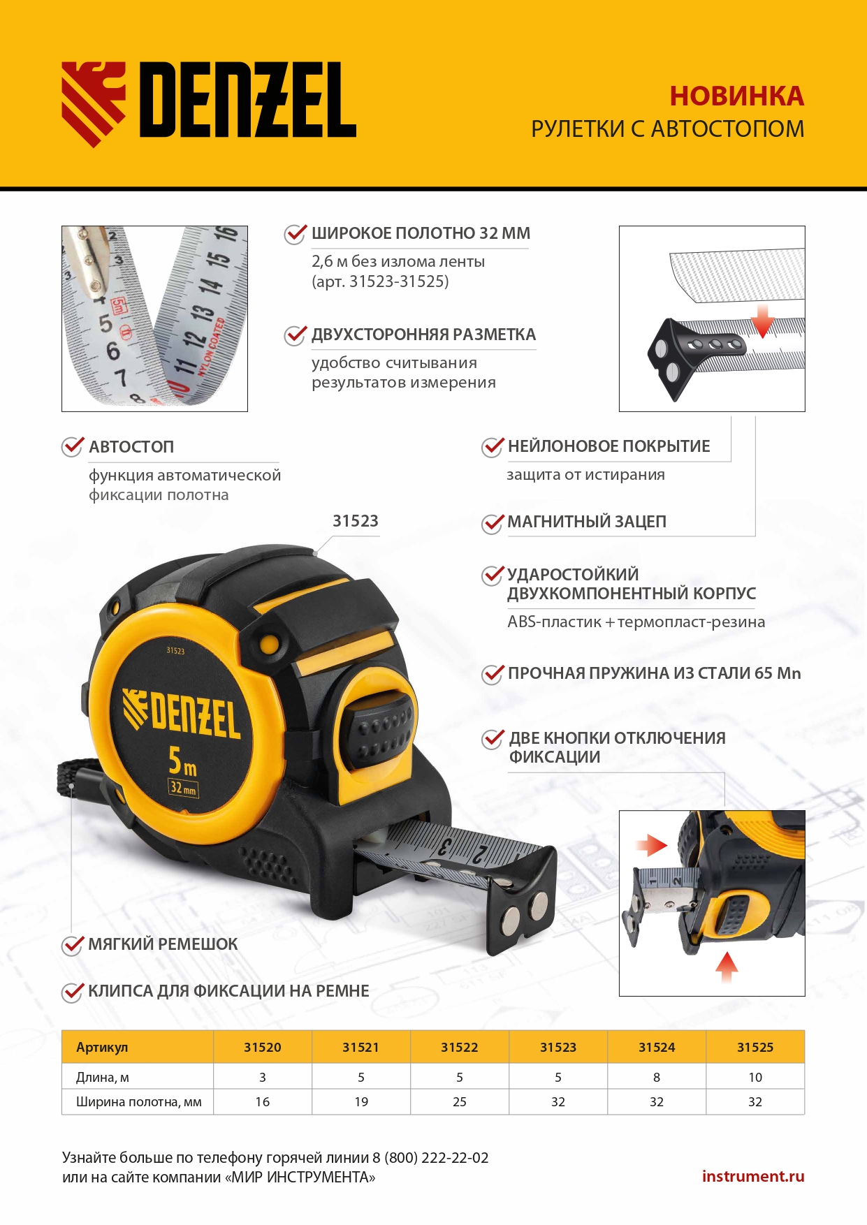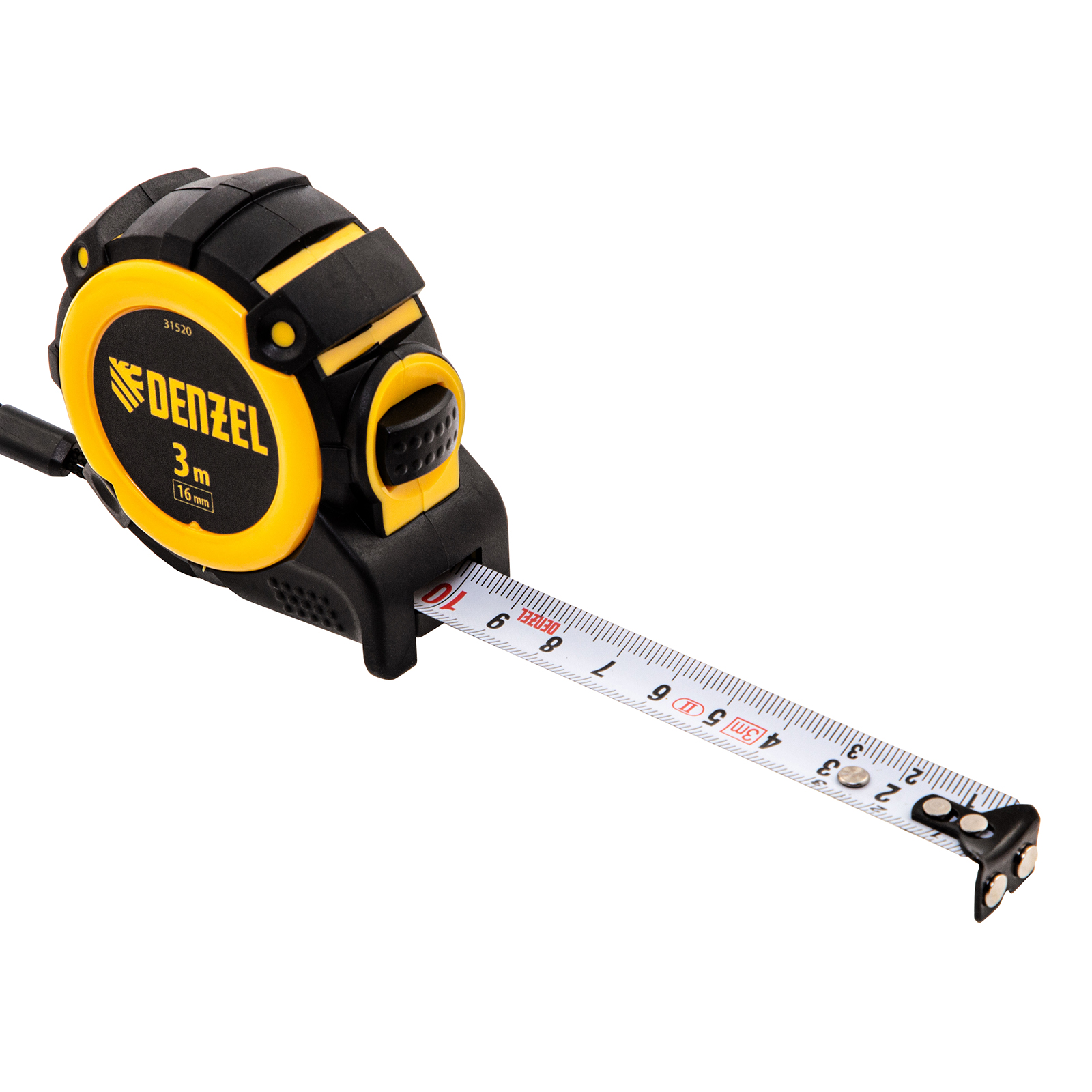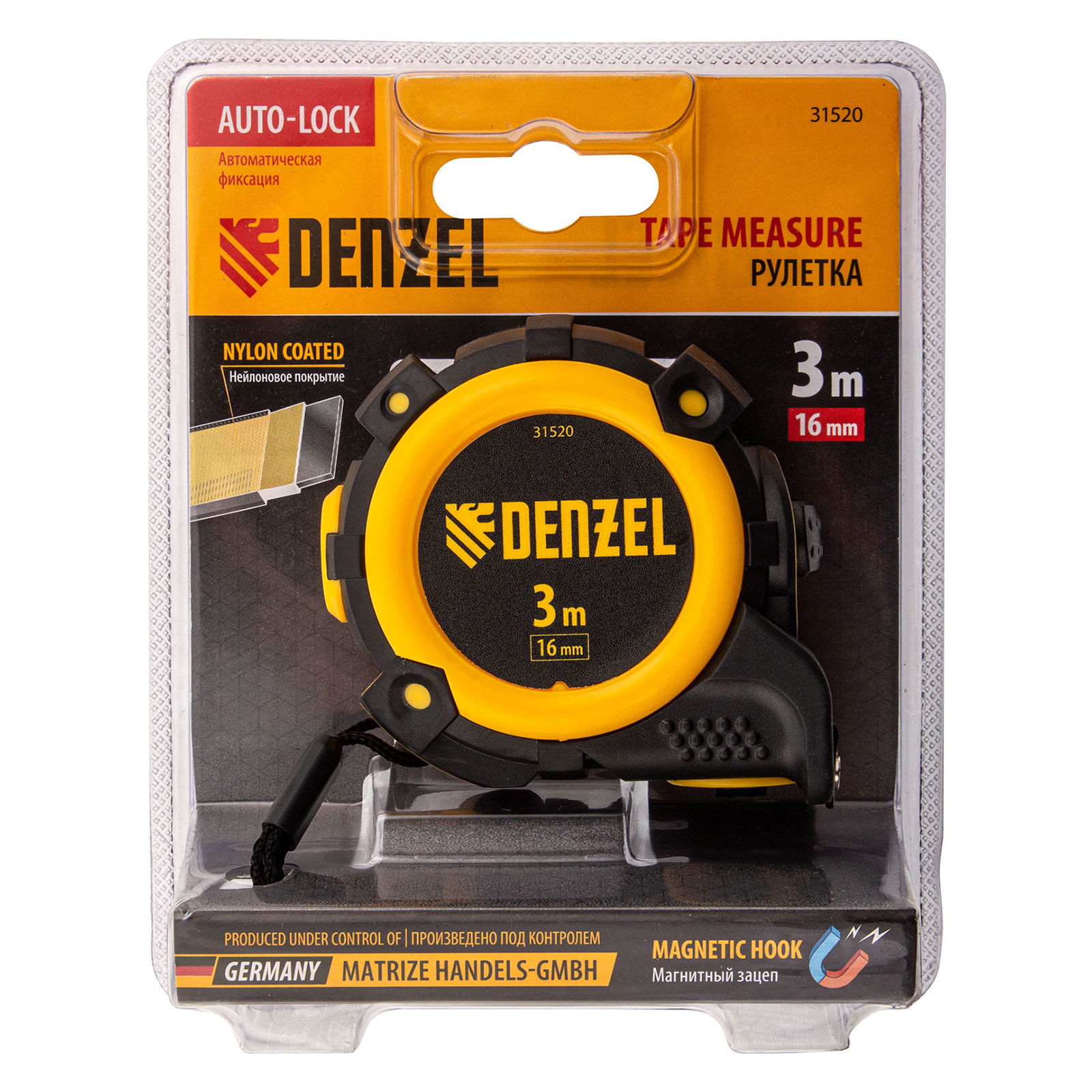 Рулетка 3м х 16мм, автоматич. фиксац., нейлон. покрытие, магнит. зацеп, двухстор. разметка Denzel в Москве