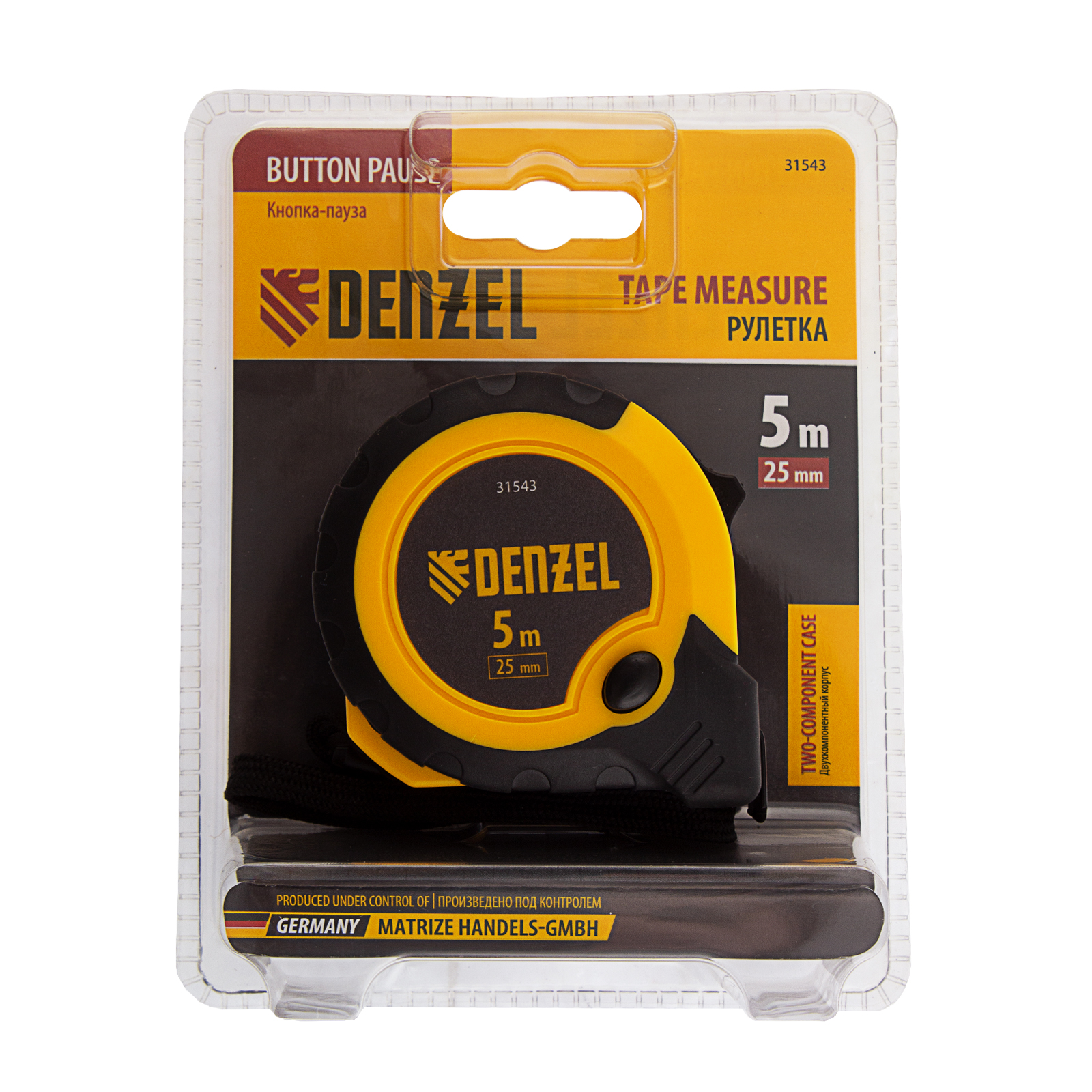 Рулетка 5м х 25мм, двухкомп. корпус, кнопка-пауза Denzel в Москве