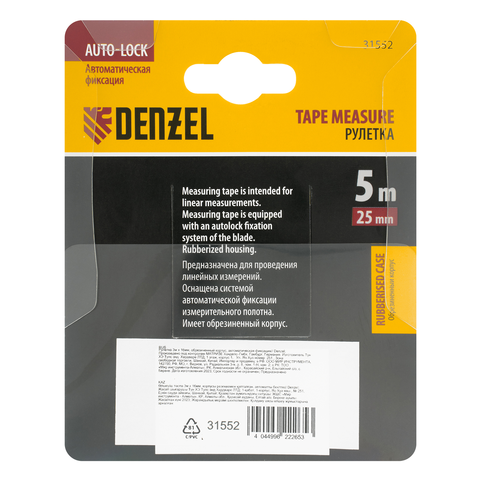 Рулетка 5м х 25мм, обрезиненный корпус, автоматическая фиксация Denzel в Москве
