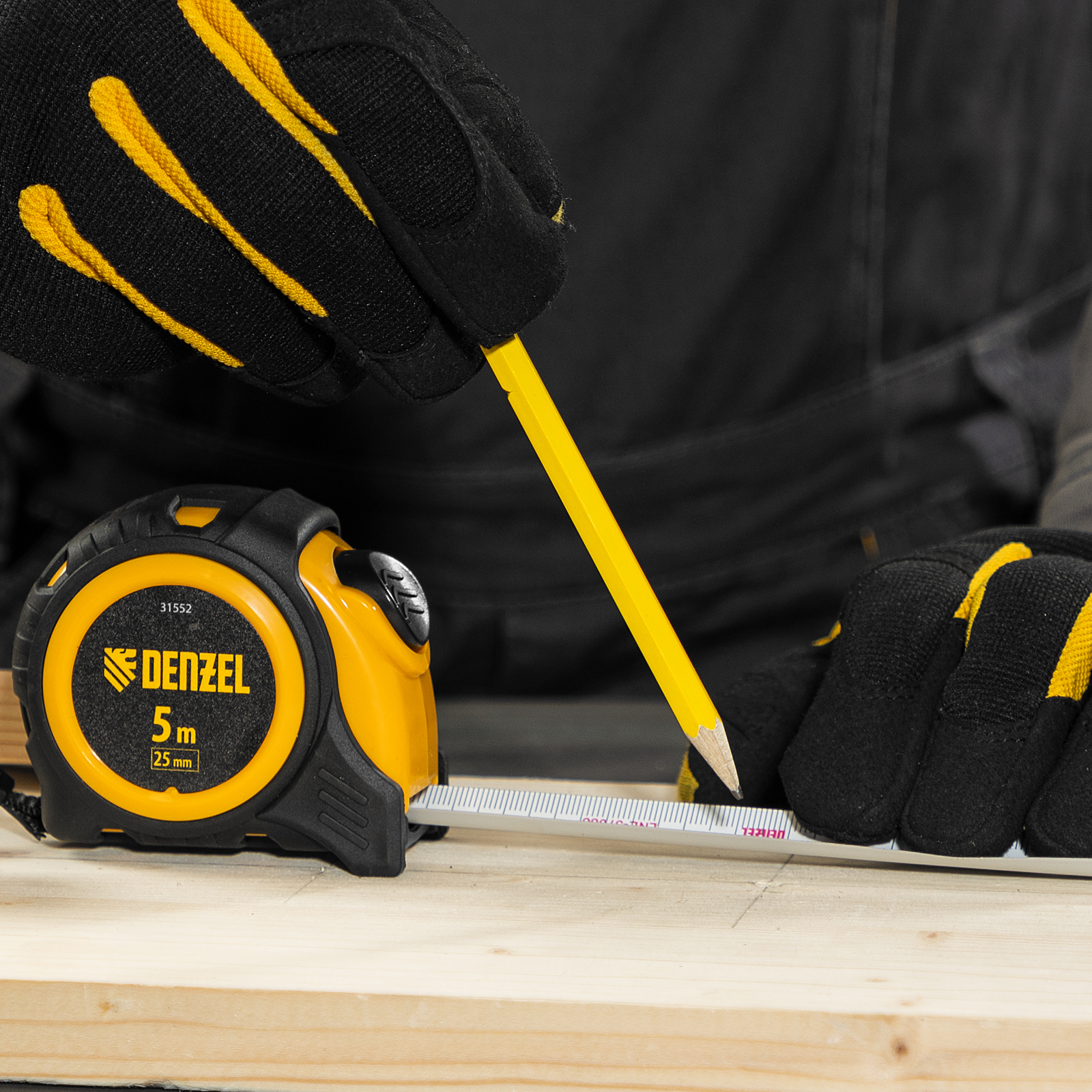 Рулетка Denzel 31552 в обрезиненном корпусе, с автоматической фиксацией, с полотном шириной 25 мм и длиной 5 м, используется для измерения расстояний и размеров предметов. Стальная лента с эмалевым покрытием и защитной пластиной в месте крепления зацепа рассчитана на долгий срок службы. Рулетка будет полезна во время строительства и ремонта, а также пригодится в быту.