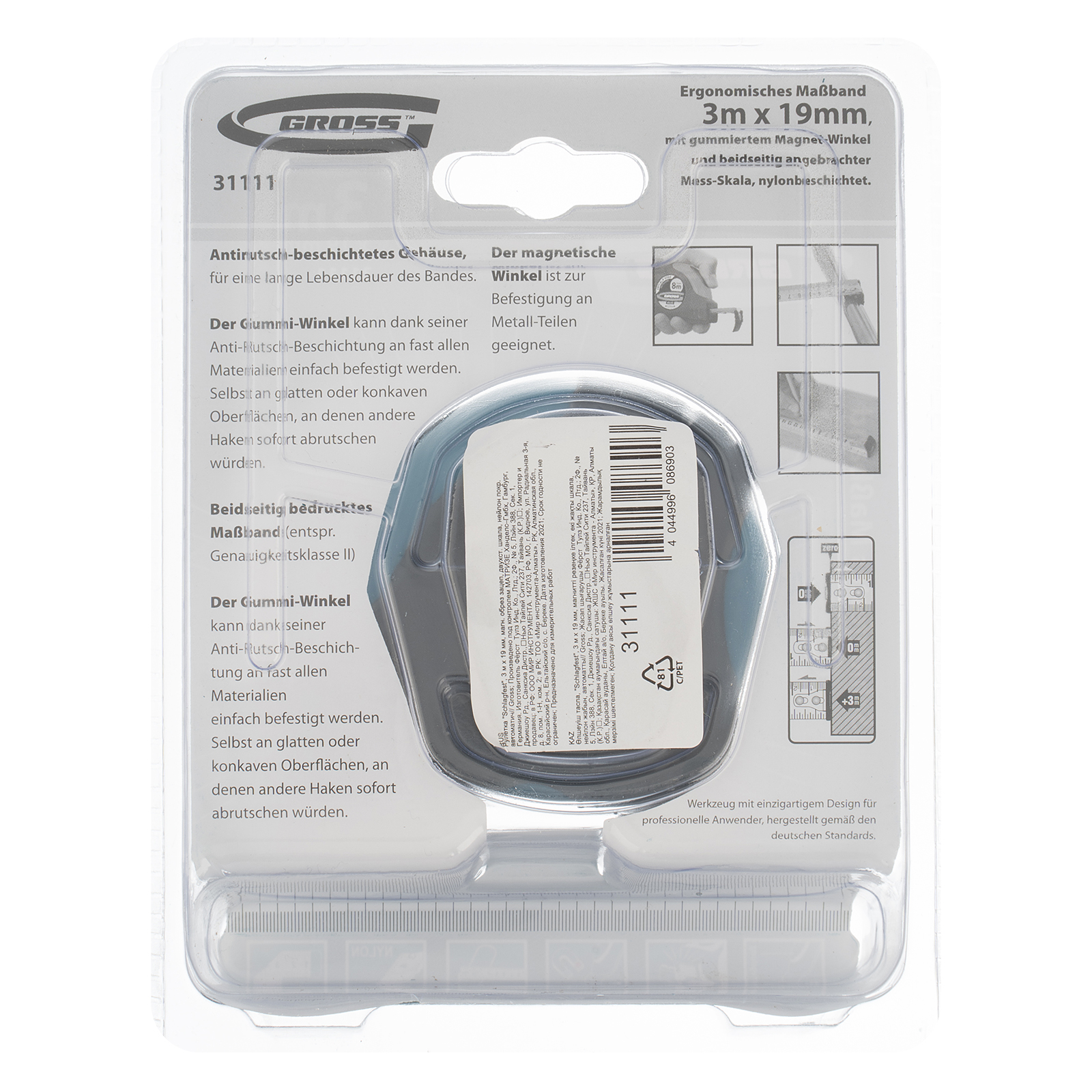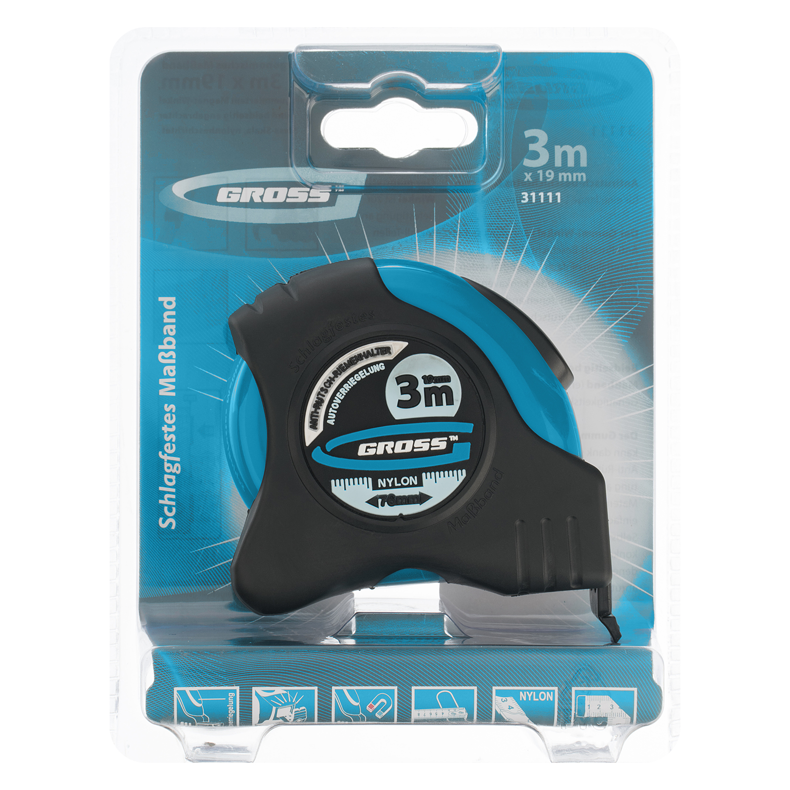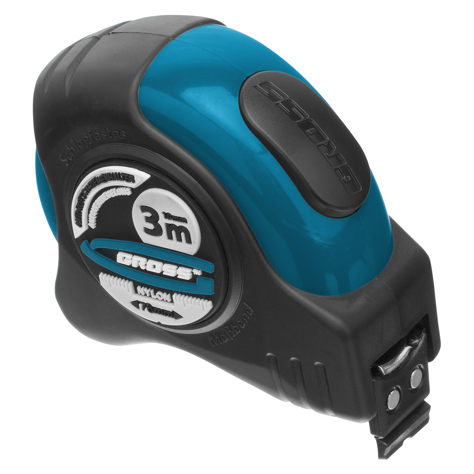 Рулетка "Schlagfest",3 м x 19 мм,магнитный обрезиненный зацеп,двусторонняя шкала,Нейлоновое покрытие,автоматическая фиксация Gross в Москве