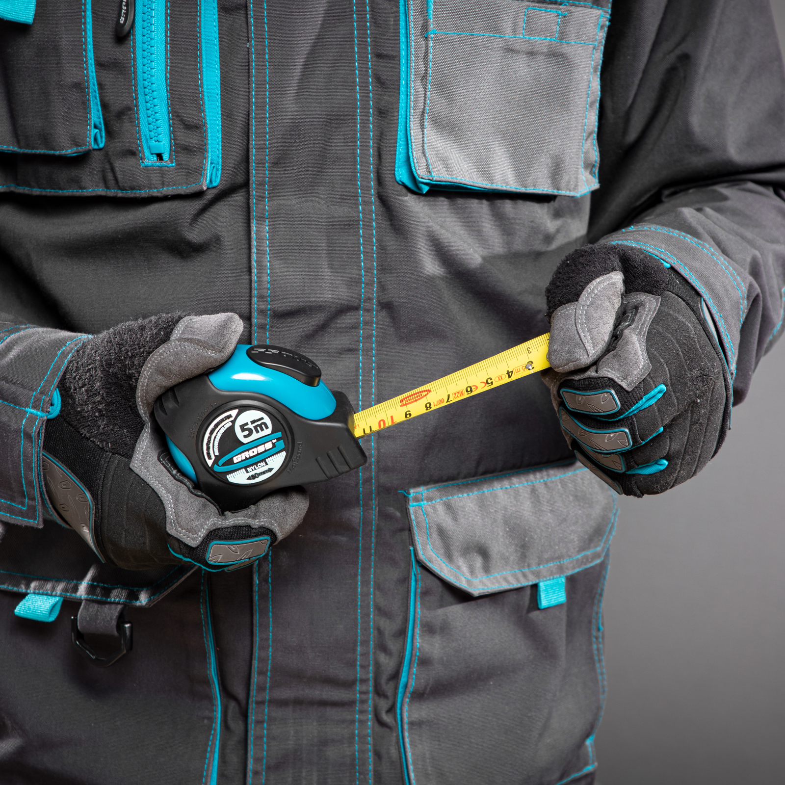 Рулетка Gross «Schlagfest» 31113 с магнитным обрезиненным зацепом, двухсторонней шкалой и функцией автоматической фиксации полотна длиной 5 м и шириной 25 мм, с нейлоновым покрытием, позволяет определять размеры предметов, вычислять площадь помещения и проводить другие измерительные работы. Магнитный обрезиненный зацеп надежно фиксируется на скользких и металлических поверхностях со сложной формой. Широкое упругое полотно облегчает работу в труднодоступных местах. Карманная рулетка пригодится на строительной площадке и в быту.