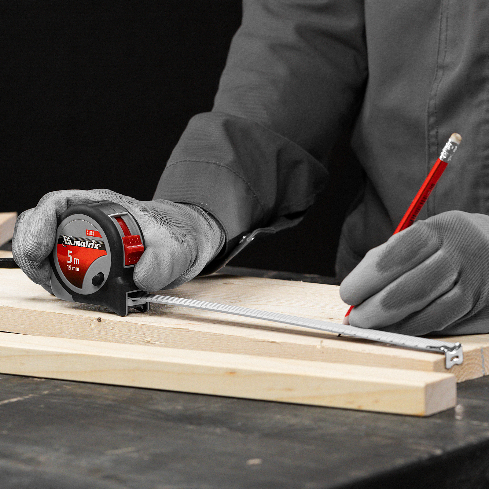 Рулетка Continuous fixation,5 м х 19 мм,двухкомпонентный корпус,плавная фиксация Matrix в Москве