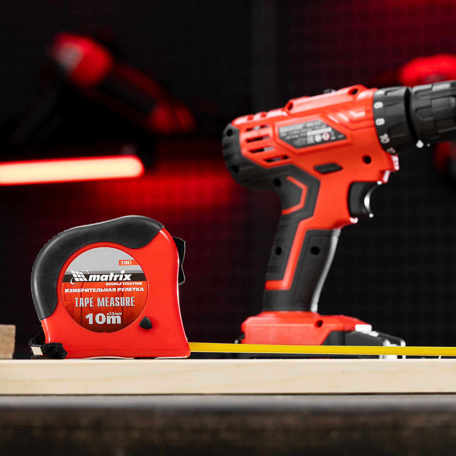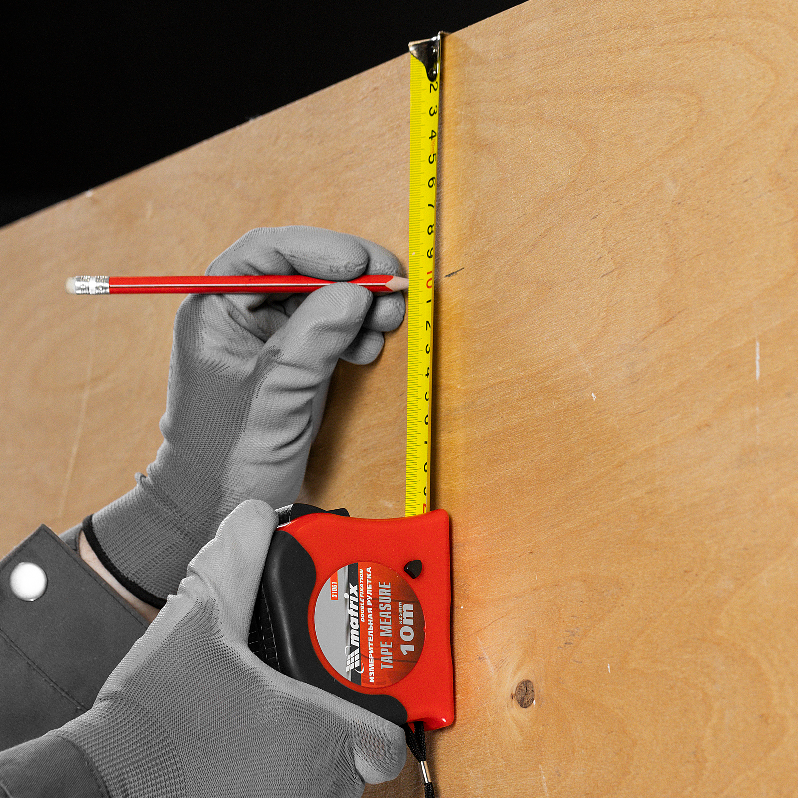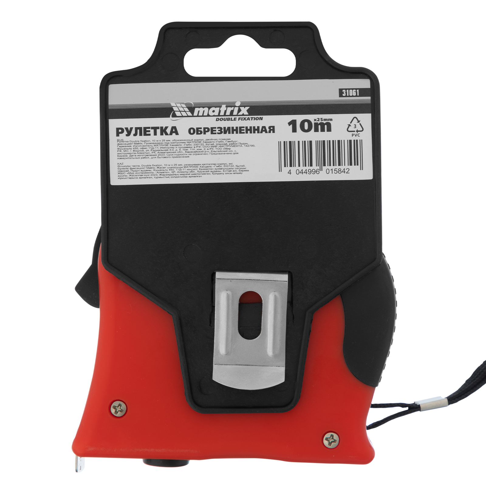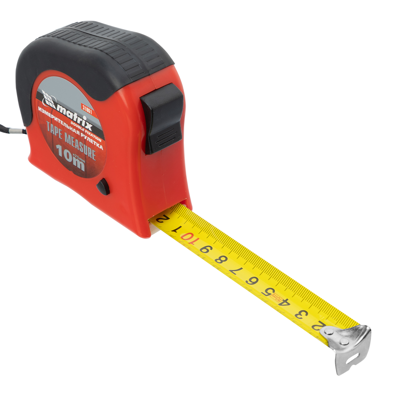Рулетка Double fixation,10 м х 25 мм,обрезиненный корпус,двойная плавная фиксация Matrix в Москве