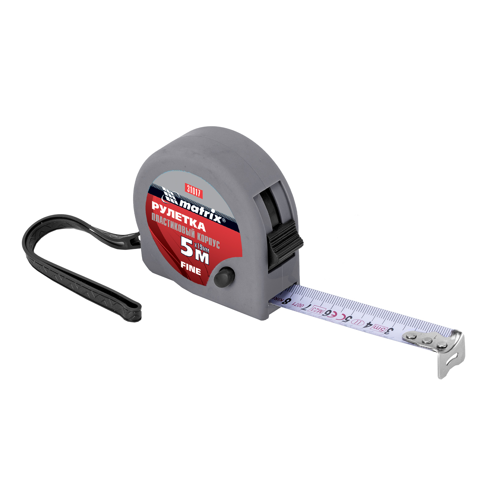 Рулетка Matrix Fine 31017 с лентой длиной 5 м и шириной 19 мм, в пластиковом корпусе, используется для замера расстояний и определения размеров различных объектов. Имеет наиболее распространенный класс точности 2, цена деления составляет 1 мм. Стопор и кнопка-пауза для фиксации ленты облегчают проведение измерений. Инструмент применяется как во время строительных работ, так и в быту.