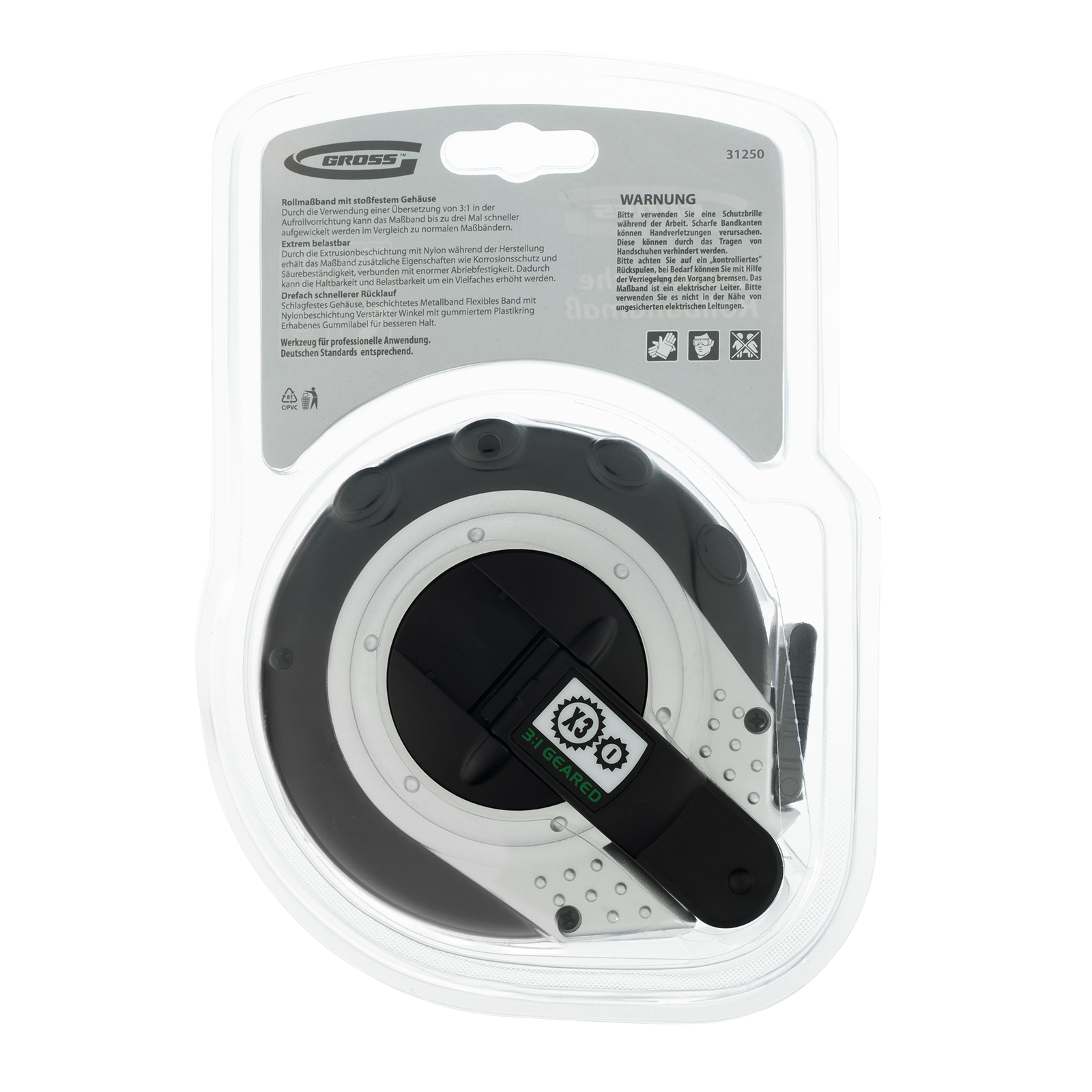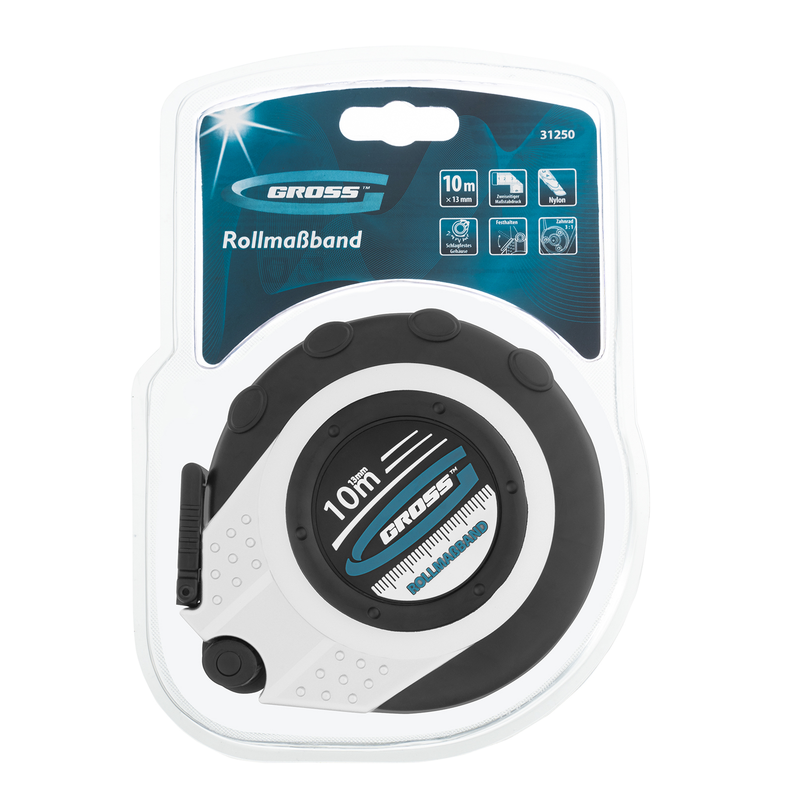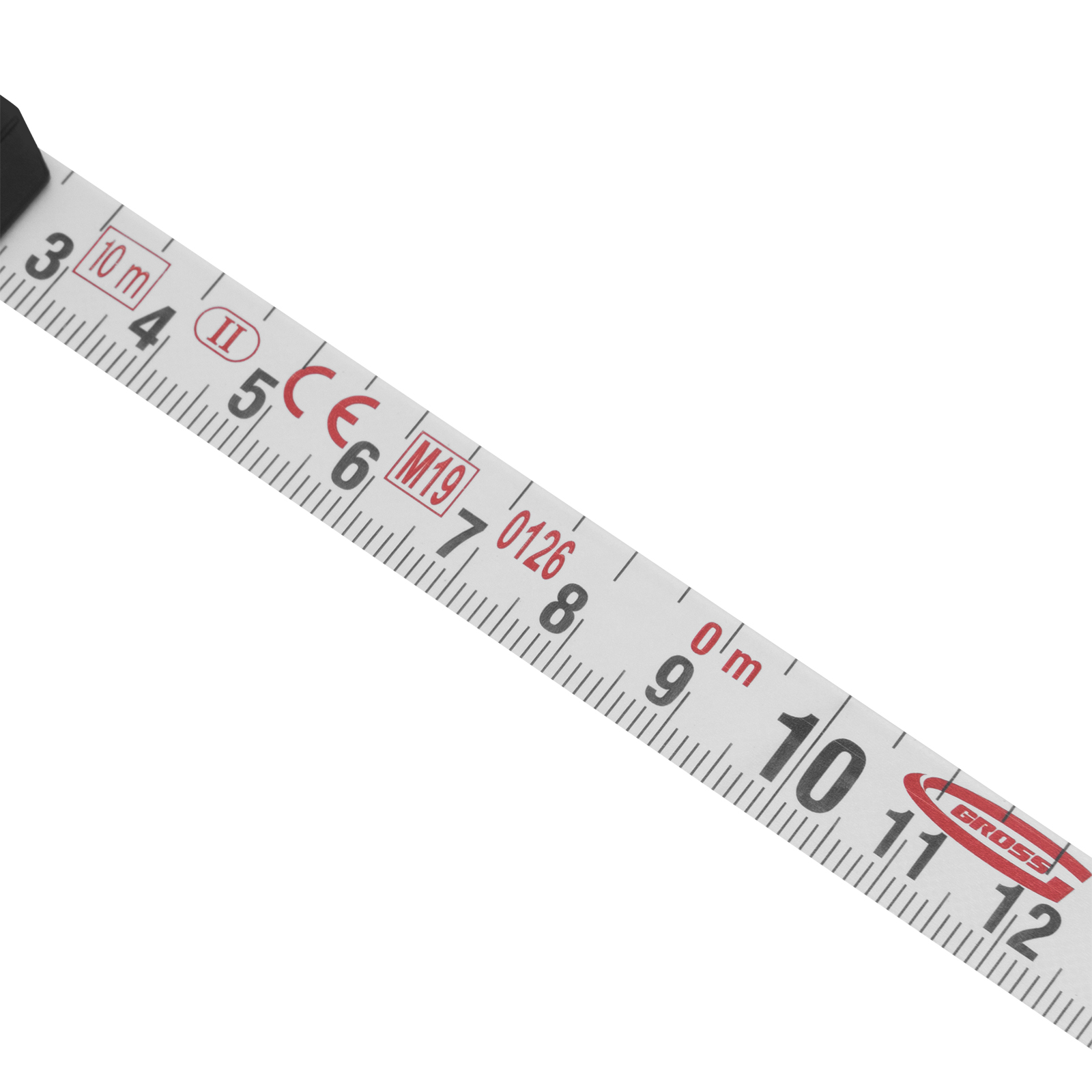 Геодезическая рулетка Gross Rollmassband 31250 в закрытом корпусе, с металлической лентой длиной 10 м и шириной 13 мм, с нейлоновым покрытием, используется для определения расстояний и размеров различных объектов. Комбинированный зацеп упрощает фиксацию измерительной ленты на измеряемой поверхности. Инструмент будет полезен на строительной площадке или земельном участке, а также во время проведения обмеров внутри помещений.