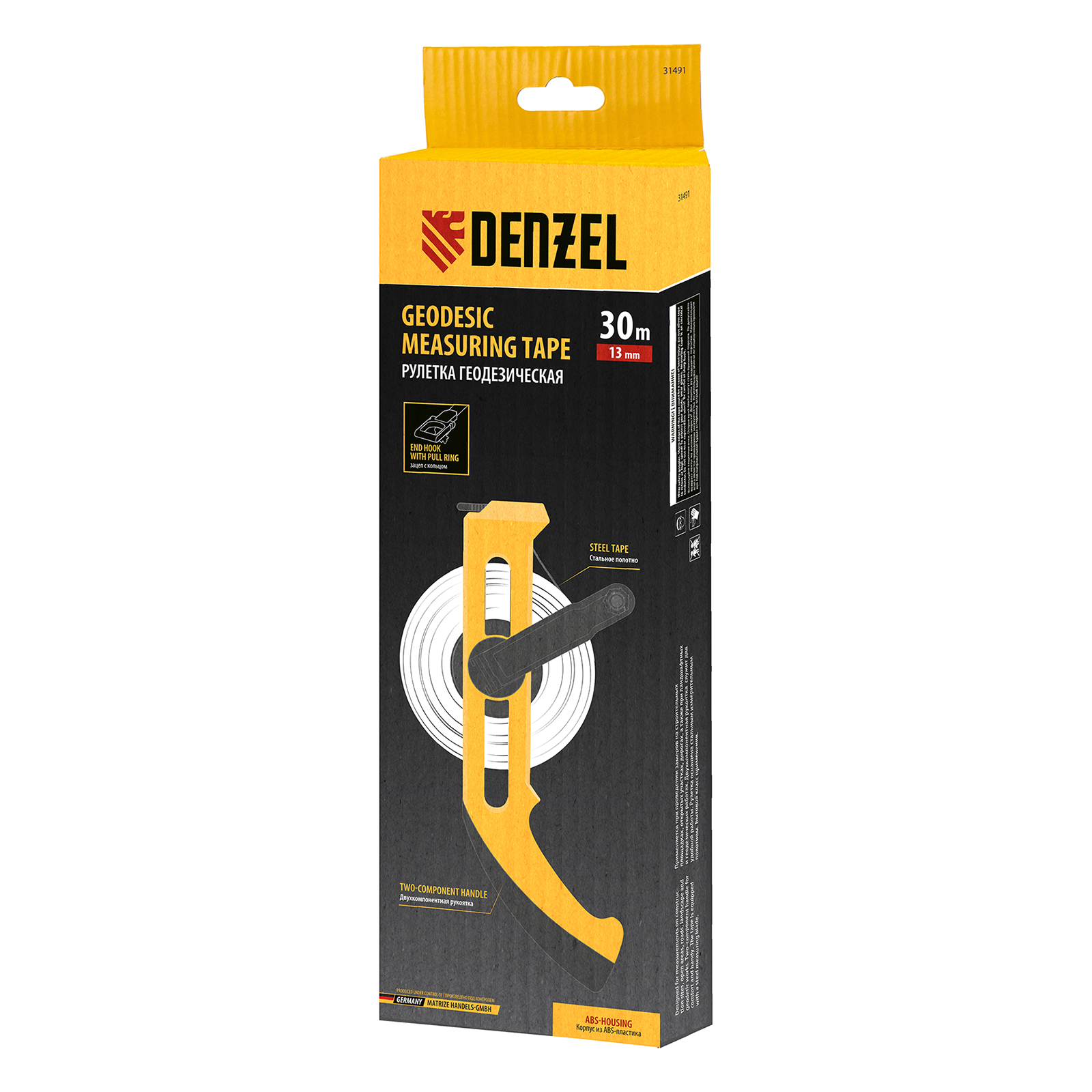 Рулетка геодезическая 30 м х 13 мм, открытый корпус, металлическая лента Denzel в Москве