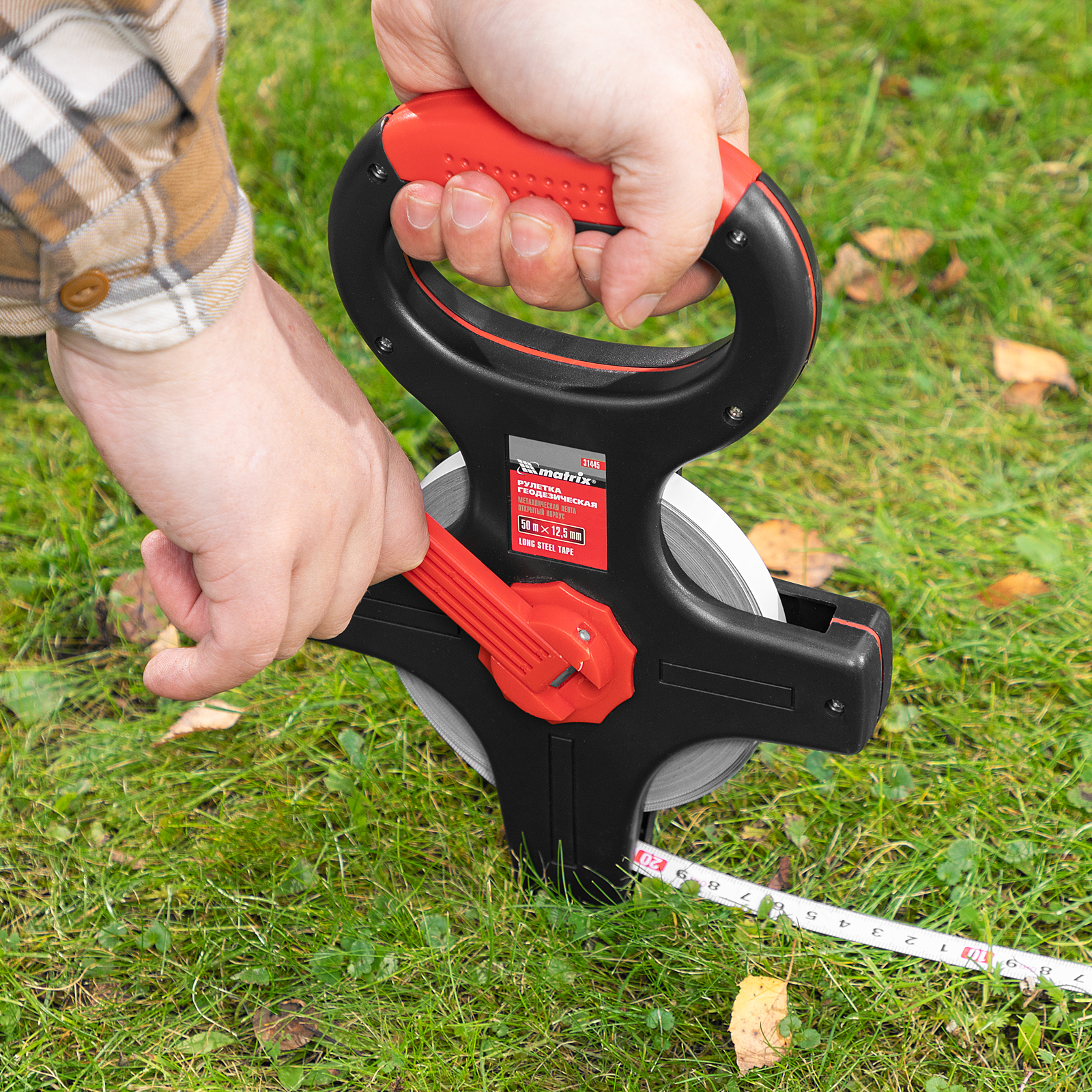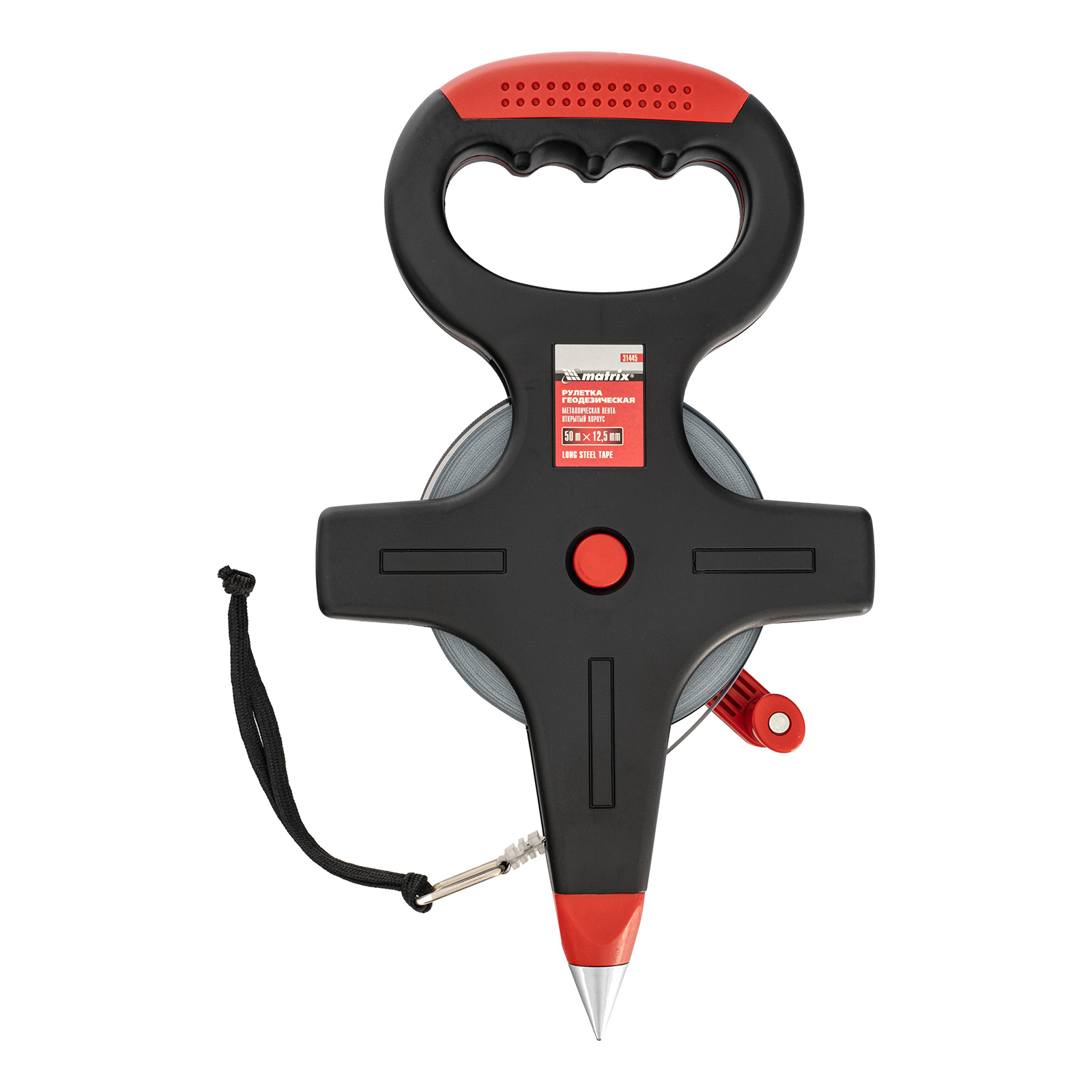 Рулетка геодезическая, 50 м х 12,5 мм, металлическая лента, открытый корпус Matrix в Москве