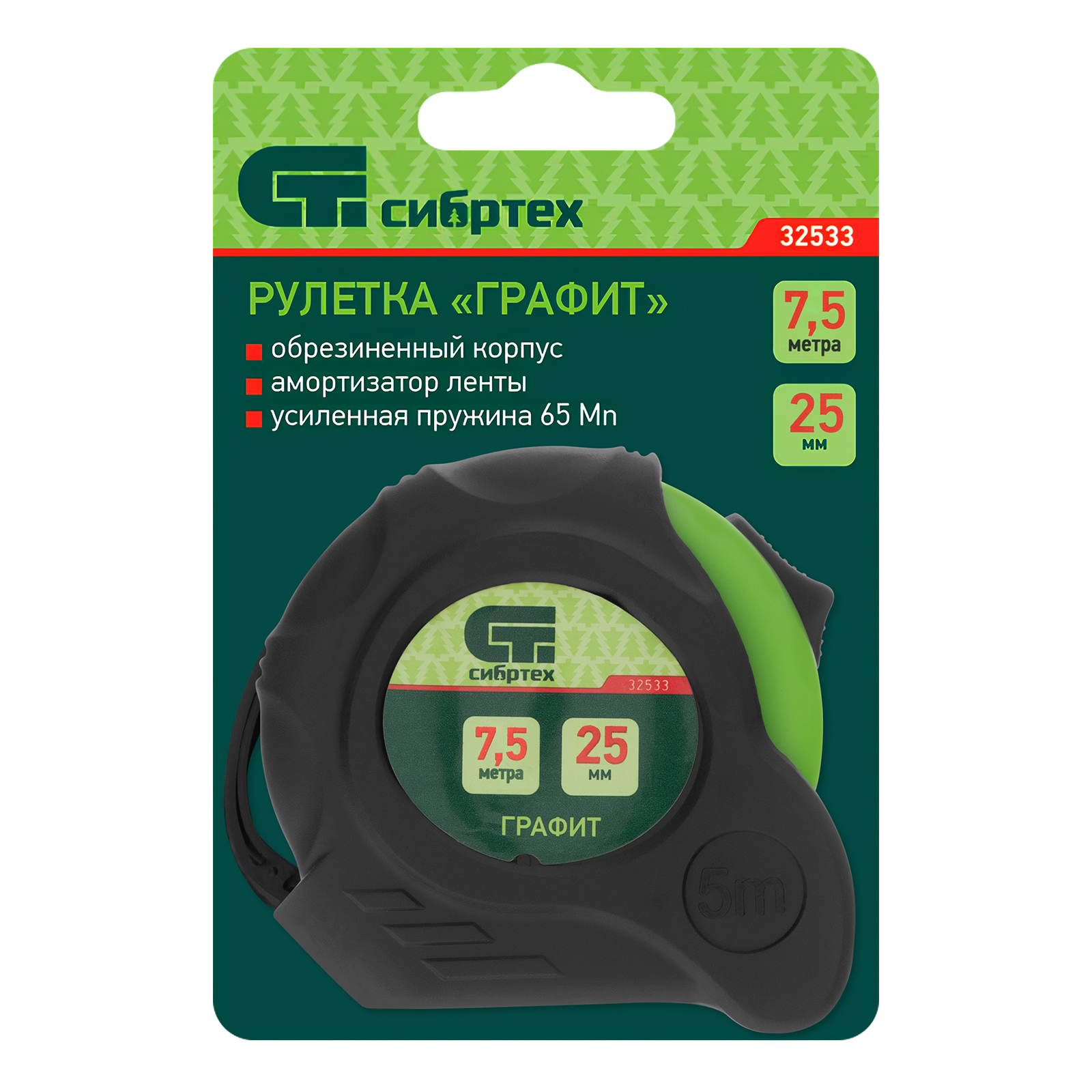 Рулетка Графит,обрезиненный корпус,амортизатор,7,5 м х 25 мм Сибртех в Москве