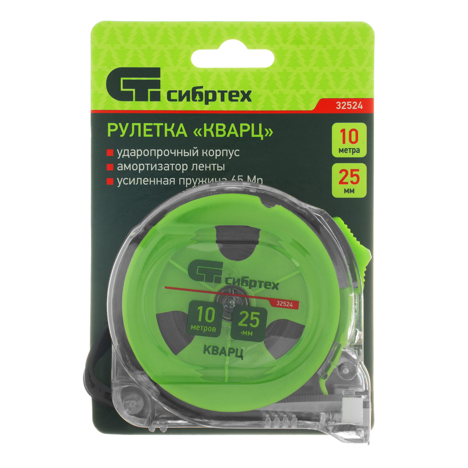 Рулетка Кварц,прозрачный корпус,амортизатор,10 м х 25 мм Сибртех в Москве