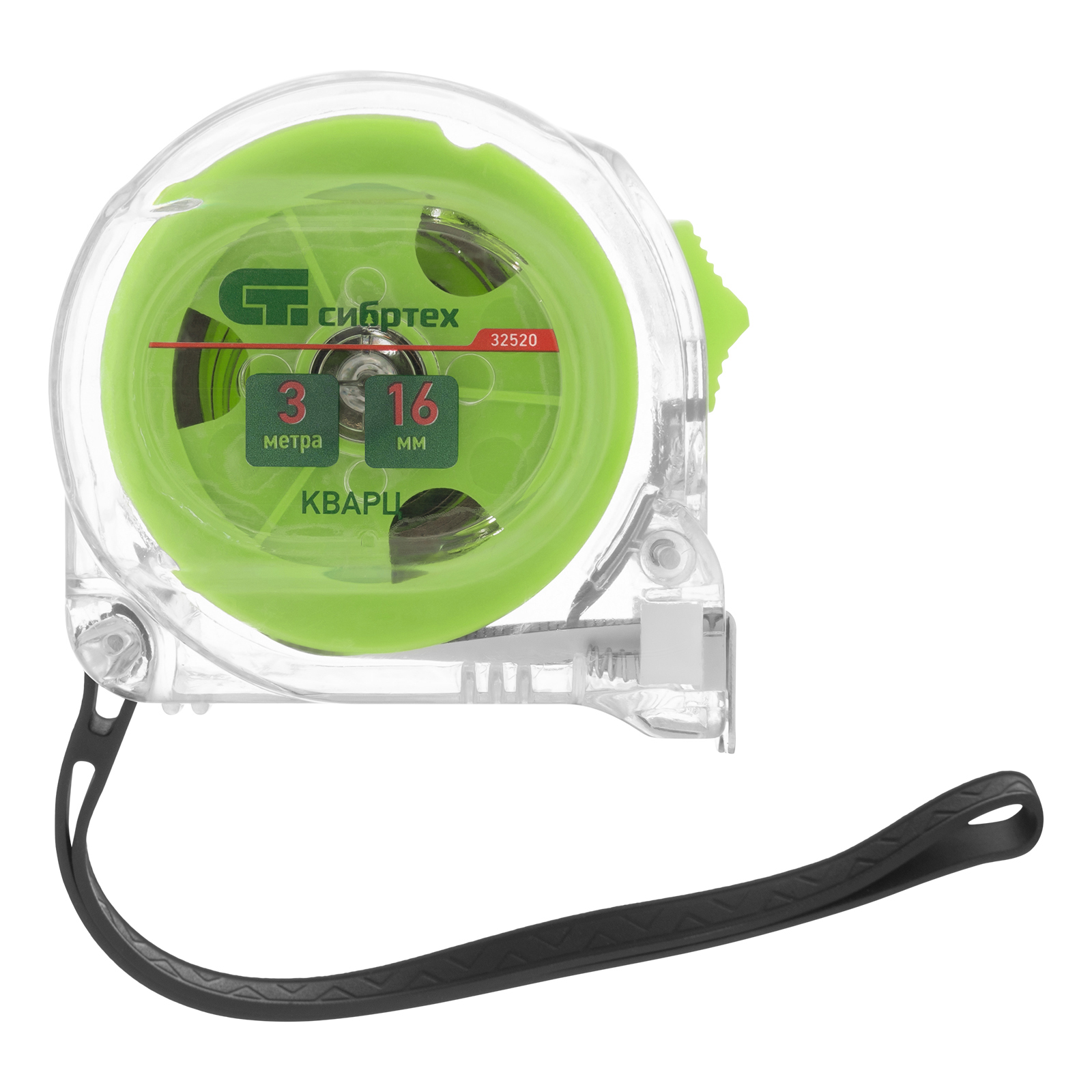 Рулетка Кварц,прозрачный корпус,амортизатор,3 м х 16 мм Сибртех в Москве